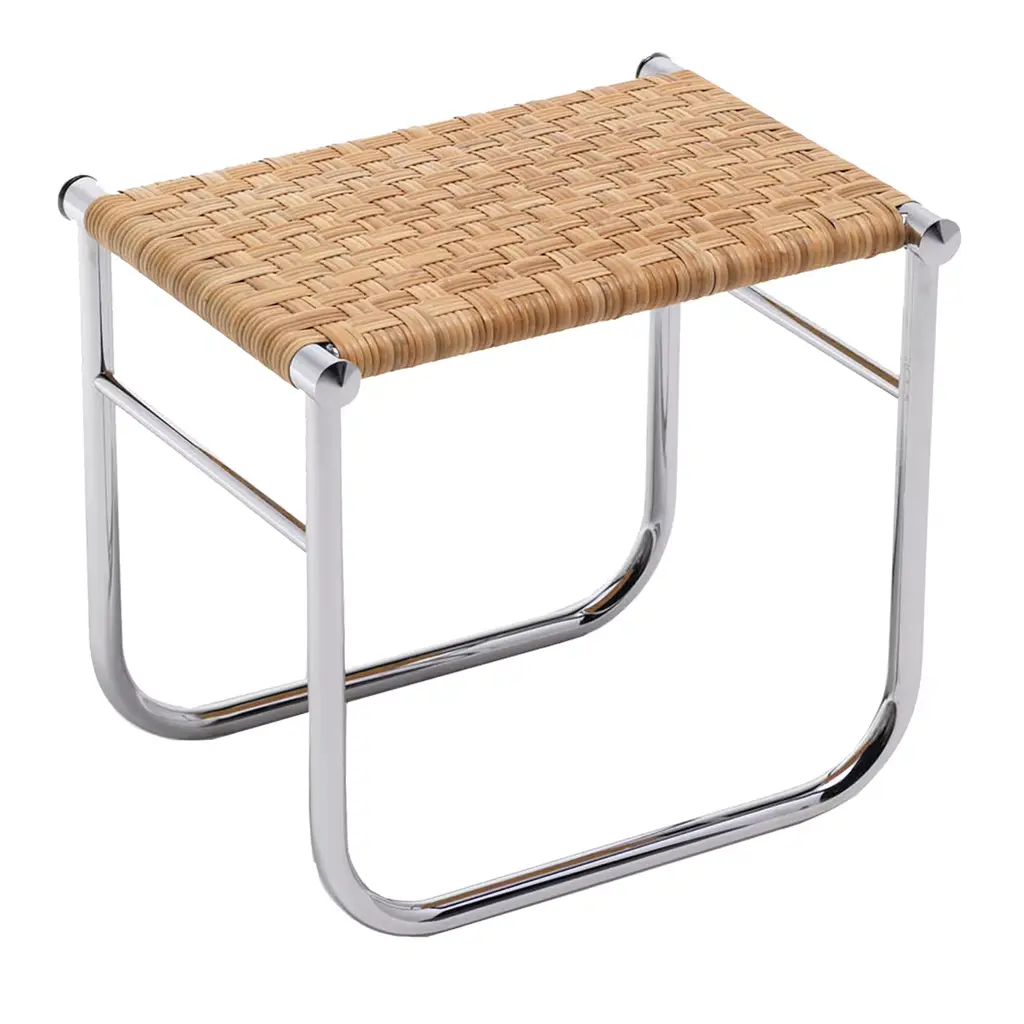 A stool whose architectural shape faithfully reflects the author’s love of conceptual harmony. The first version was designed by Perriand in 1927 for the dining room of her Paris atelier, and was crafted with structure in tubular metal, paired with a woven rattan seat. The current model features a trivalent chrome-plated steel structure that can be personalized with various upholstery options, including cowhide and classic rattan.Cassina designs complete, comfortable and inviting living spaces where the most innovative products of contemporary design coexist alongside icons by the great masters of the Modern Movement.