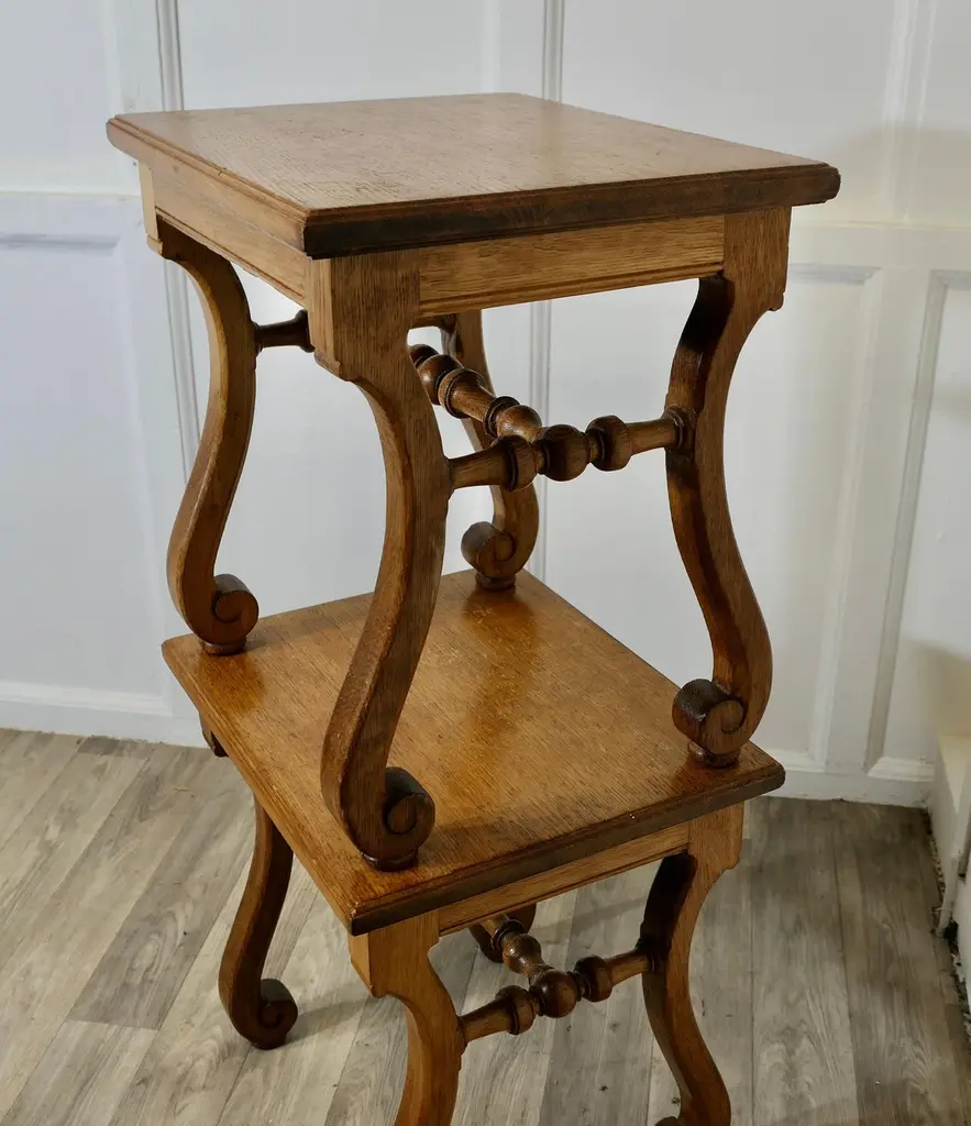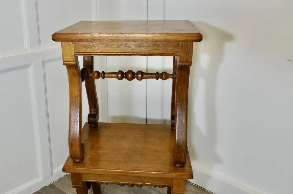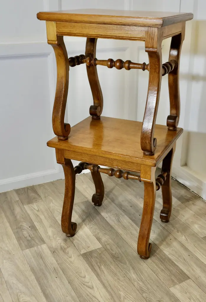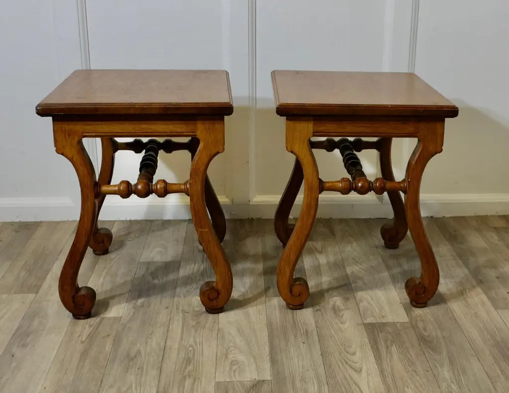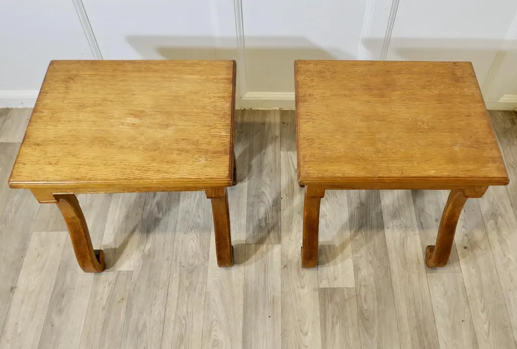 A Pair Of French Arts And Crafts Oak Stools, Occasional Tables