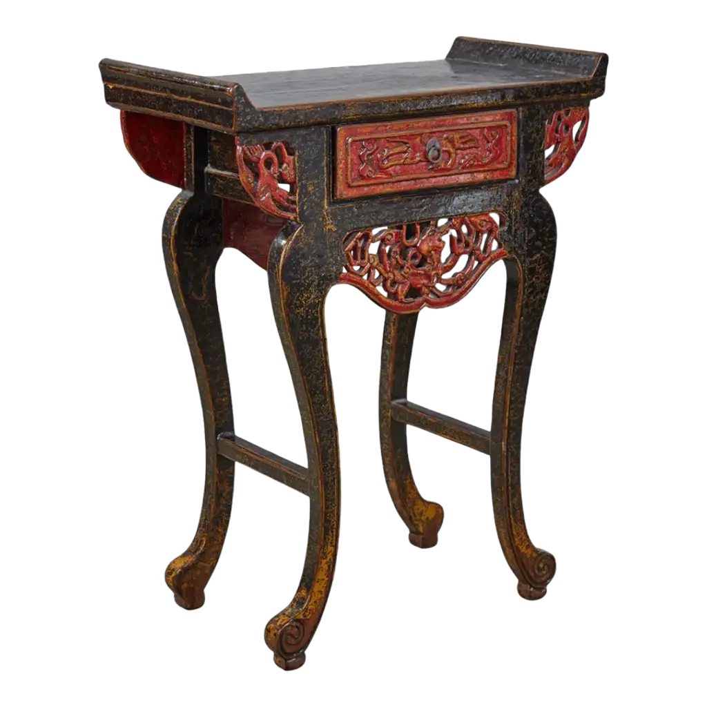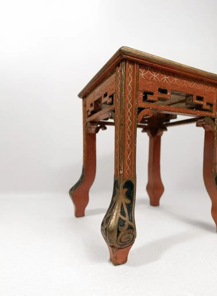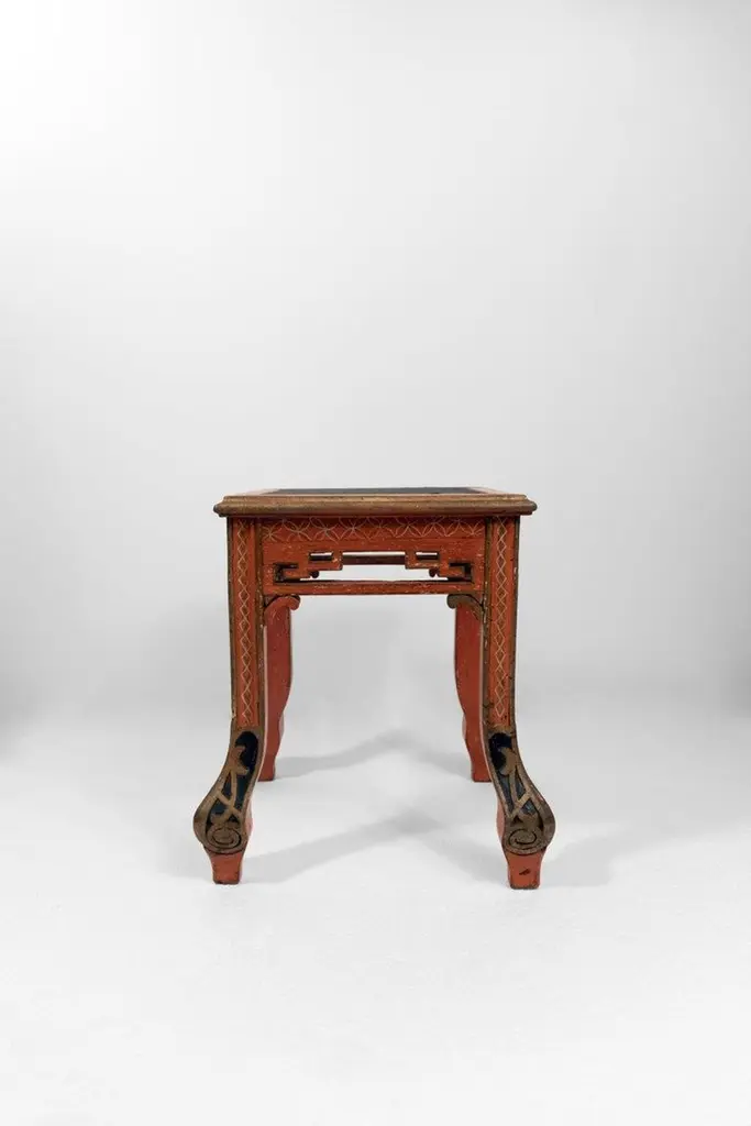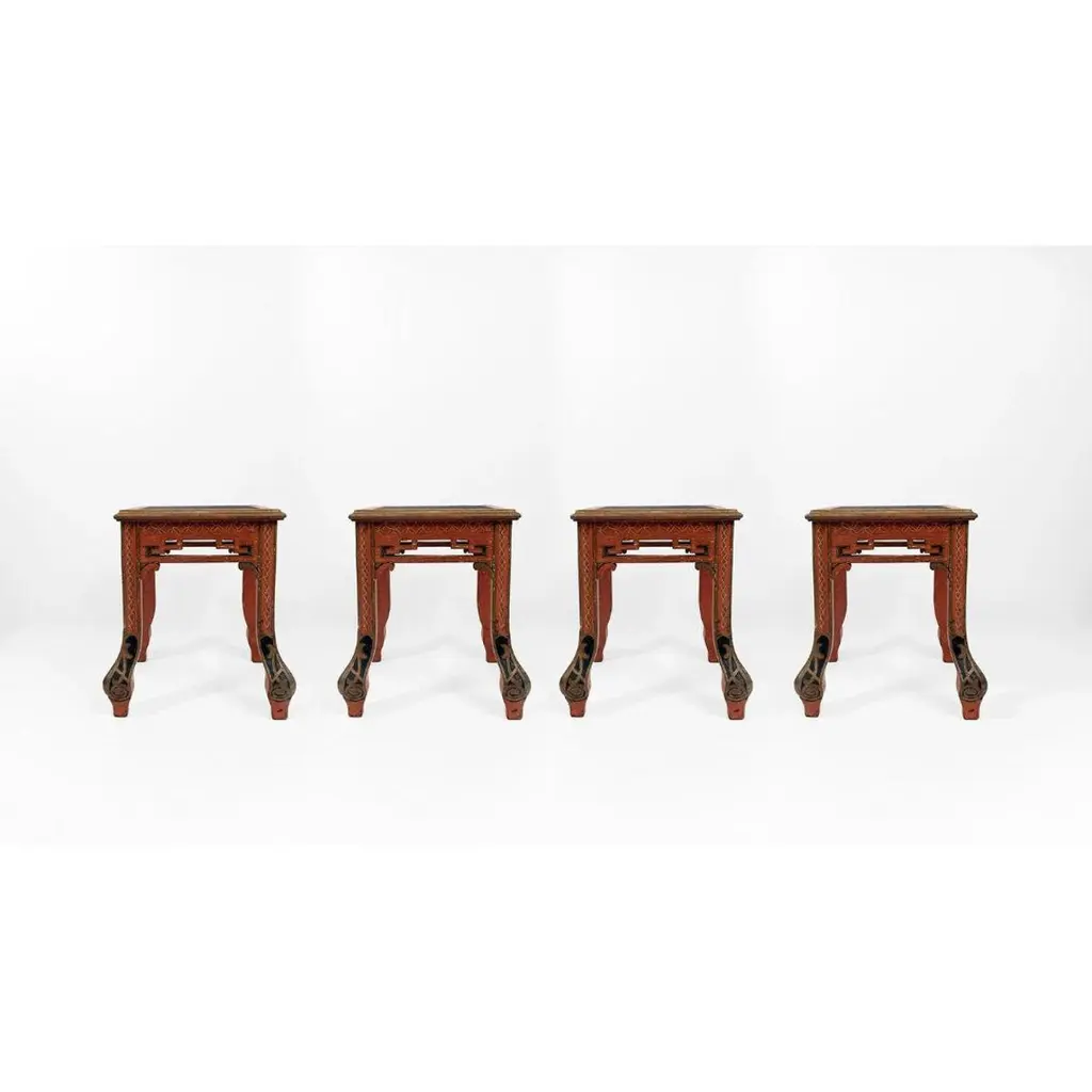 A Set Of Four Red Painted Chinoiserie Stools