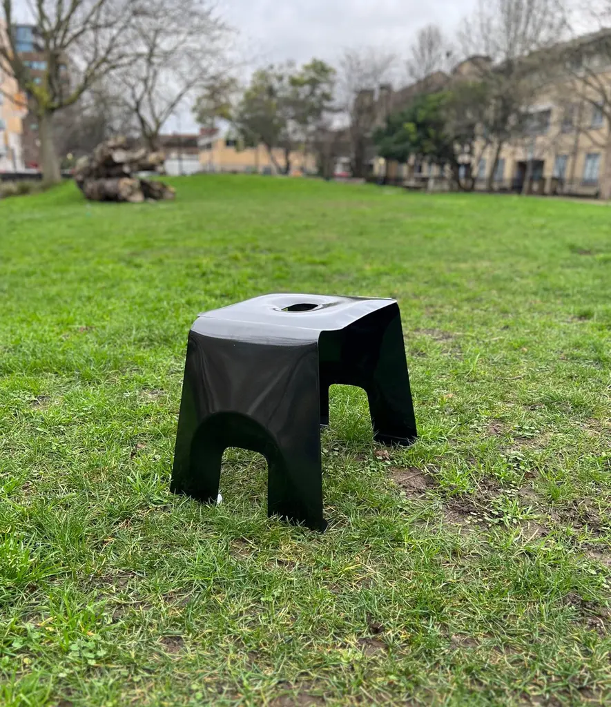 A Stool by Jaclyn PappalardoDimensions: W 53 x D 41 x H 43 cmMaterials: Mild steel powder coated.Jaclyn is a designer and maker based in London. Her background in set design informs her creative work as a designer. Colour and texture play an important role in developing each and every project. With a particular interest in the use of seating, Jaclyn looks at chairs not only as a functional object but rather as a study of body, shape and language. Her work incorporates unconventional design techniques that stretch far from traditional craftsmanship. Exploring new techniques and material driven processes such as metal forming and non-traditional upholstery, she builds on similar profiles and repetitive patterns in the aim of creating something timeless. Jaclyn’s work has been published in Arcipelago, Modern House, Dezeen, Vogue and Luncheon magazine. Represented by The Radford Gallery & Fels World gallery in London UK. Caselli 11-12 Gallery in Milan IT, works alongside private commissions for residences, retail stores, and galleries.