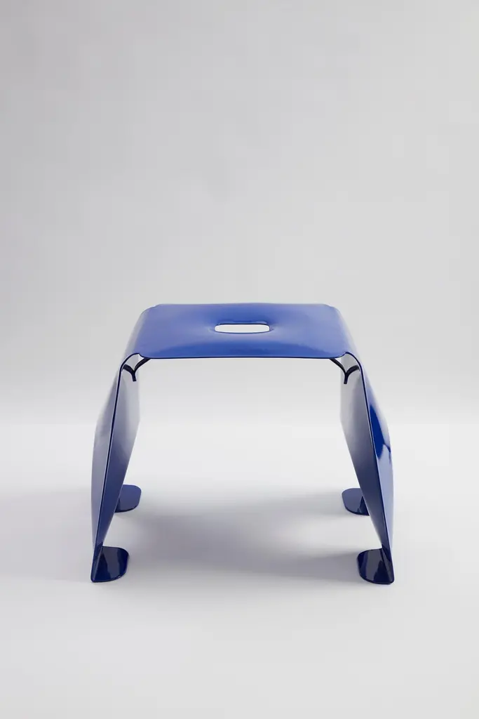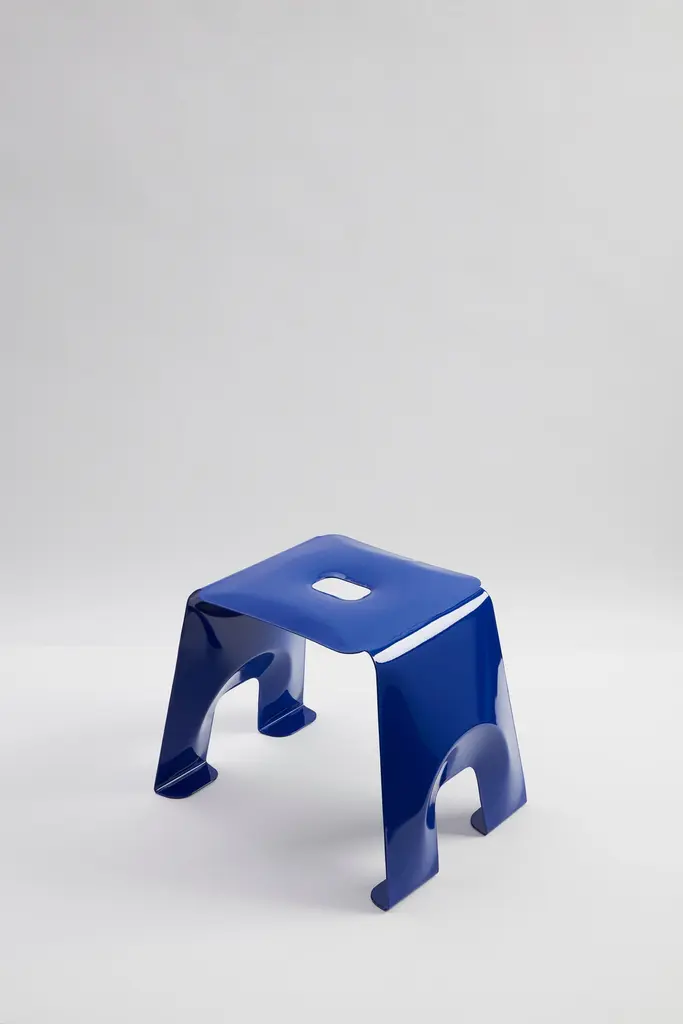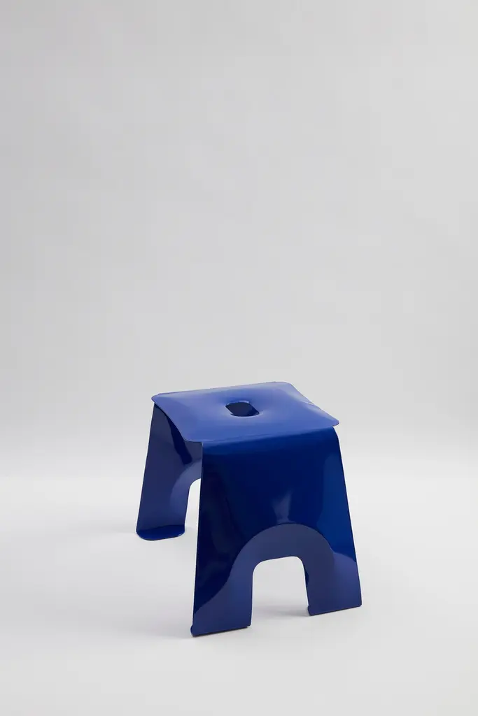 A Stool by Jaclyn PappalardoDimensions: W 53 x D 41 x H 43 cmMaterials: Mild steel powder coated.Jaclyn is a designer and maker based in London. Her background in set design informs her creative work as a designer. Colour and texture play an important role in developing each and every project. With a particular interest in the use of seating, Jaclyn looks at chairs not only as a functional object but rather as a study of body, shape and language. Her work incorporates unconventional design techniques that stretch far from traditional craftsmanship. Exploring new techniques and material driven processes such as metal forming and non-traditional upholstery, she builds on similar profiles and repetitive patterns in the aim of creating something timeless. Jaclyn’s work has been published in Arcipelago, Modern House, Dezeen, Vogue and Luncheon magazine. Represented by The Radford Gallery & Fels World gallery in London UK. Caselli 11-12 Gallery in Milan IT, works alongside private commissions for residences, retail stores, and galleries.