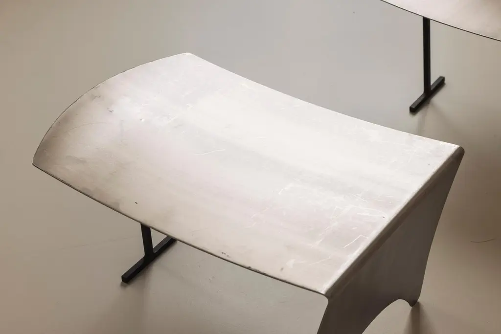 A Striking Set Modernist Curved Metal Stools From France, Dating To The 1980s.