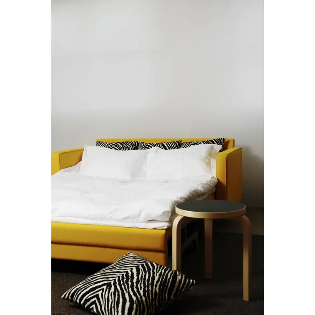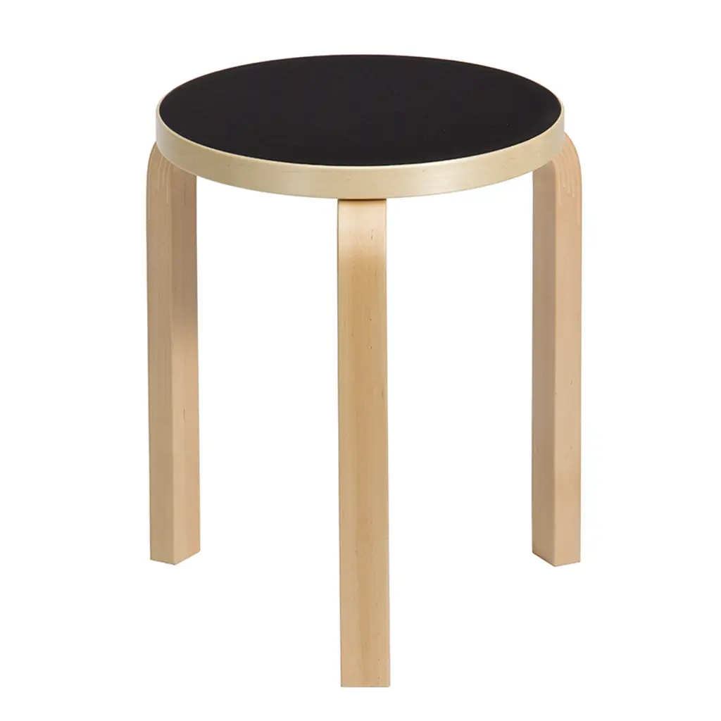 Stool 60, designed by Alvar Aalto for Artek, is one of the icons of Finnish furniture design. The three-legged Aalto stool is still today a beautiful, genius product whose simple shape will always be modern. Stool 60 makes a perfect extra chair and can also be used as a small table, for instance, next to an armchair or bed. The stools are easily stackable as a beautiful tower when not in use. The Aalto stool was presented for the first time in 1933 and it was a sensation in the design world of its time. The stool’s revolutionary L-leg structure was a major boost for all the modern Scandinavian design. To bend the leg of Aalto’s stool, the same technique is still in use: a piece of straight, solid birch was sawn open at the end in the direction of the fibers, forming the shape of a fan. Thin pieces of plywood were then glued in the grooves. This structure makes it possible to bend the wood by heating or steaming the desired angle and when dry, it will have a very strong texture that can be easily joined to the seat.