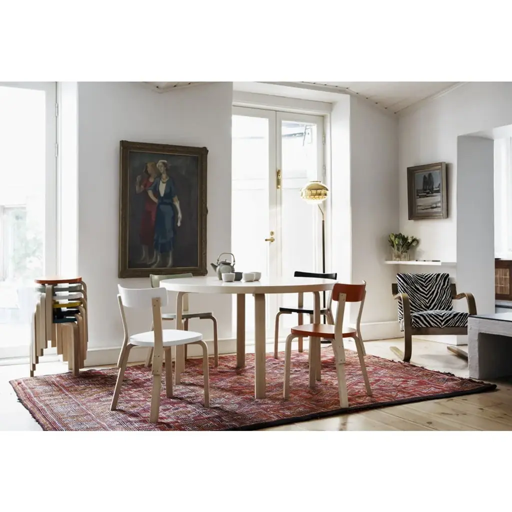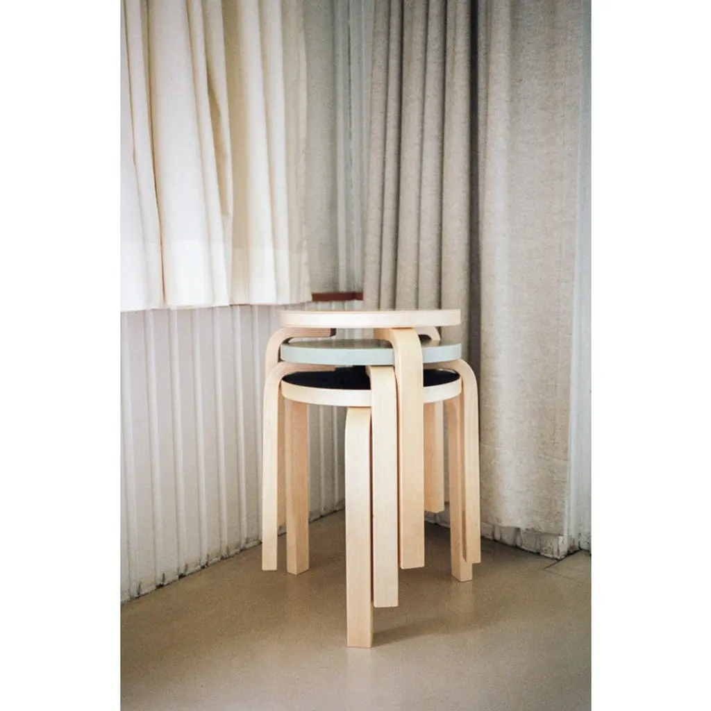 To celebrate the 80th anniversary of Alvar Aalto's Stool 60, Artek has made a special edition of the iconic stool. The colors are borrowed directly from Aalto’s Paimio Sanatorium: the yellow of the floors, the green of the walls, and the orange, white and black of the furniture. Stool 60, designed by Alvar Aalto for Artek, is one of the icons of Finnish furniture design. The three-legged Aalto stool is still today a beautiful, genius product whose simple shape will always be modern. Stool 60 makes a perfect extra chair and can also be used as a small table, for instance, next to an armchair or bed. The stools are easily stackable as a beautiful tower when not in use. The Aalto stool was presented for the first time in 1933 and it was a sensation in the design world of its time. The stool’s revolutionary L-leg structure was a major boost for the modern Scandinavian design language. To bend the leg of Aalto’s stool, the same technique is still in use: a piece of straight, solid birch was sawn open at the end in the direction of the fibers, forming the shape of a fan. Thin pieces of birch veneer were then glued in the grooves. This structure makes it possible to bend the wood by heating or steaming at the desired angle and when dry, the L-leg will have a very strong texture that can be easily joined to the seat.