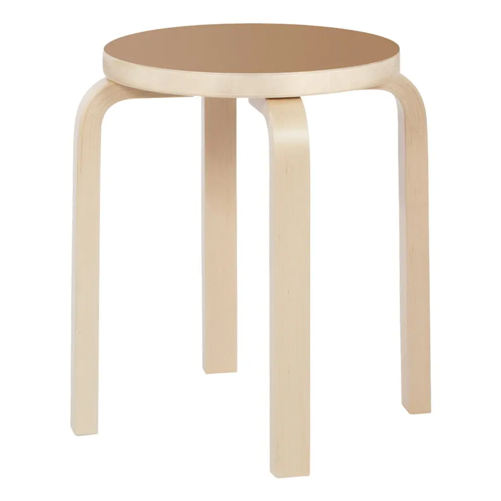Stool E60, designed by Alvar Aalto for Artek, is one of the icons of Finnish furniture design. The four-legged Aalto stool is still today a beautiful, genius product whose simple shape will always be modern. Stool E60 makes a perfect extra chair and can also be used as a small table, for instance, next to an armchair or bed. The stools are easily stackable as a beautiful tower when not in use. The Aalto stool was presented for the first time in 1933 and it was a sensation in the design world of its time. The stool’s revolutionary L-leg structure was a major boost for the modern Scandinavian design language. To bend the leg of Aalto’s stool, the same technique is still in use: a piece of straight, solid birch was sawn open at the end in the direction of the fibers, forming the shape of a fan. Thin pieces of birch veneer were then glued in the grooves. This structure makes it possible to bend the wood by heating or steaming at the desired angle and when dry, the L-leg will have a very strong texture that can be easily joined to the seat.