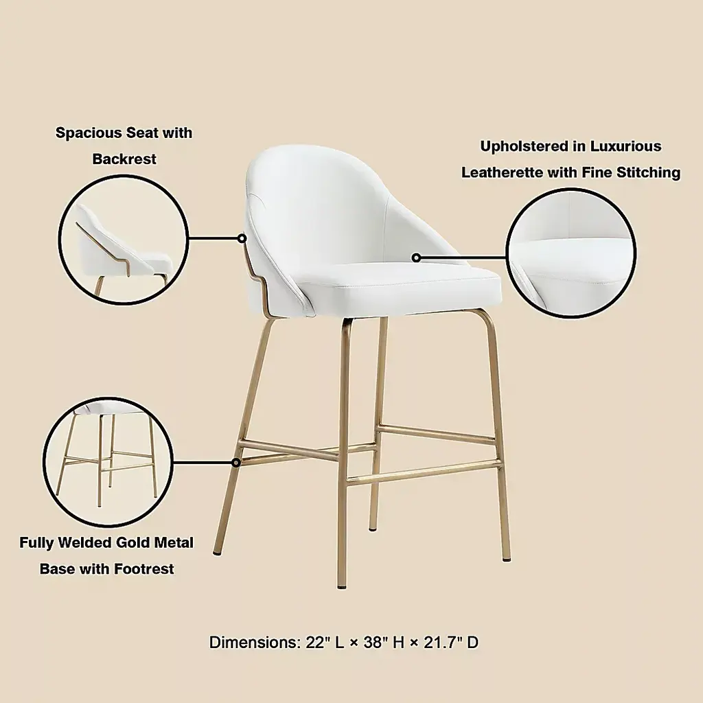 Elevate your dining and gathering spaces with the Acewalk II white counter height stool, where timeless elegance meets modern sophistication. With its sculpted curves, plush seating, and graceful silhouette, Acewalk effortlessly blends comfort and refinement, making every meal, toast, or conversation a moment to savor. Perfect for creating spaces that feel as inviting as they are beautiful. Customer assembly is required.
