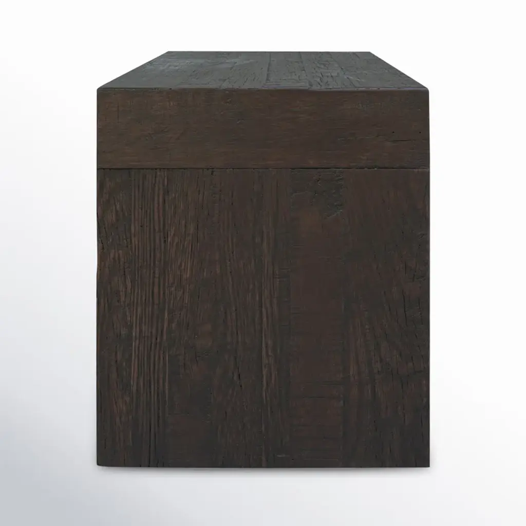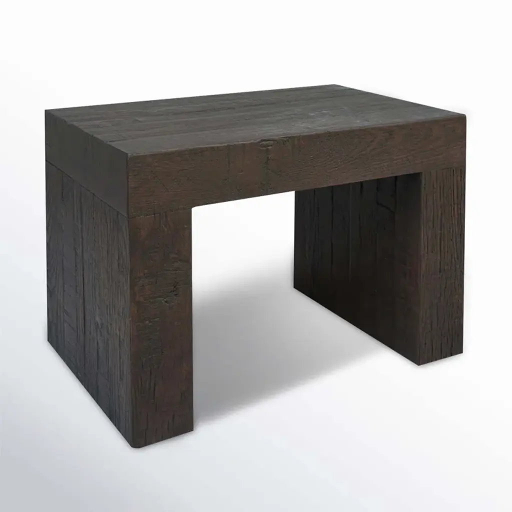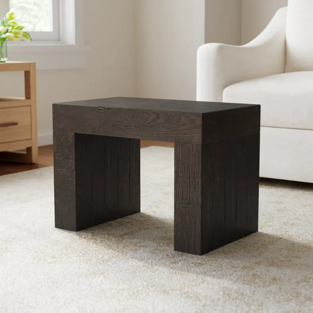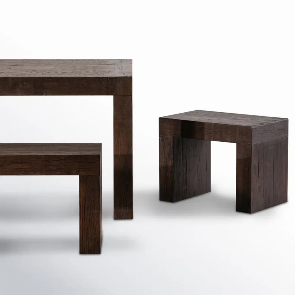 This accent stool has a simple block silhouette; we think it evokes the look of modern sculpture. It’s crafted from solid reclaimed oak wood with a finish that highlights the grain, knots, and natural imperfections for just a touch of visual texture. Use as an extra seat, a footrest, or as a surface for a stack of art books.