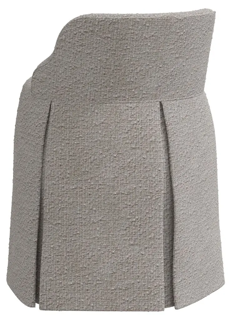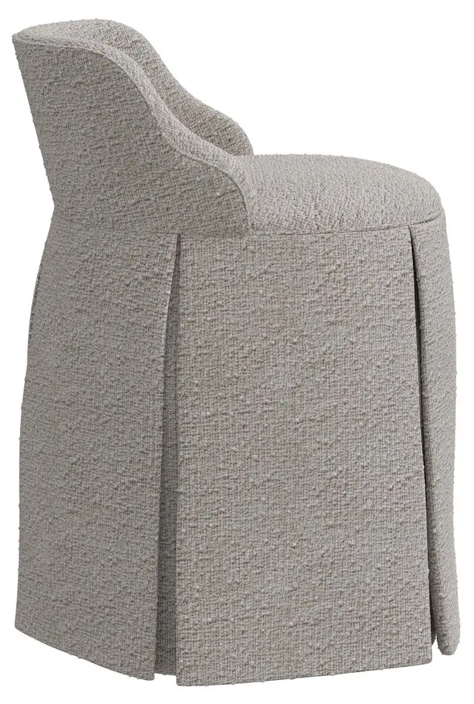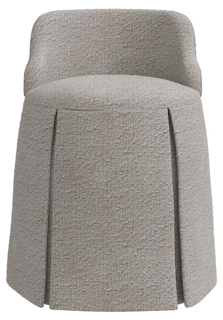 Made in the USA and upholstered in plush bouclé-like fabric, this skirted chair will bring time-honored elegance to your boudoir, your bath, or just about any other space in your home.