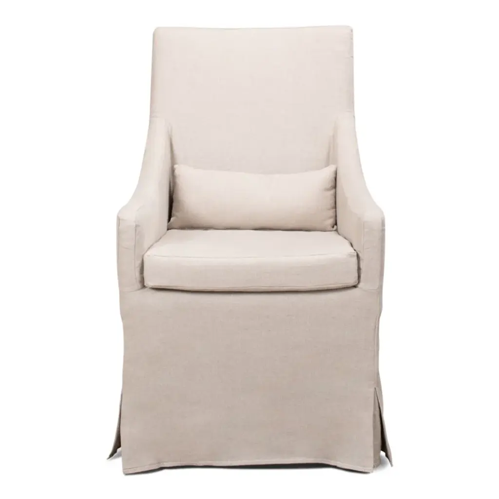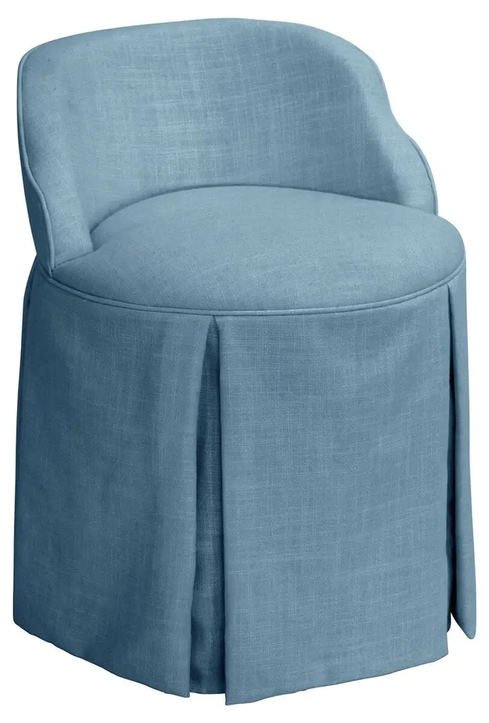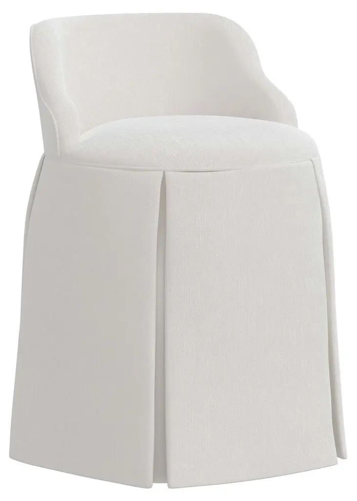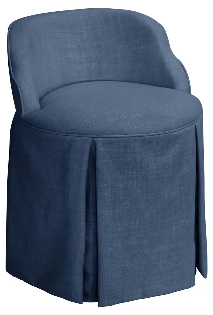 This skirted vanity chair is designed with a sturdy pine frame, contoured back, and blended upholstery. A generous foam-and-fiber fill ensures long-lasting comfort and support. Handcrafted in the USA.
