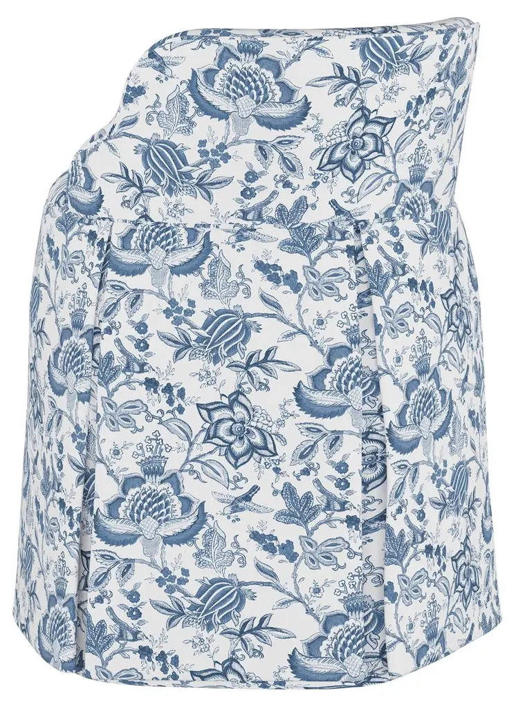 Featuring fabric by Cloth & Co. exclusive to One Kings Lane: With its patterned upholstery and cushy foam fill, this skirted stool makes for a comfortable perch alongside a vanity or in a dressing room. Handcrafted in the USA.