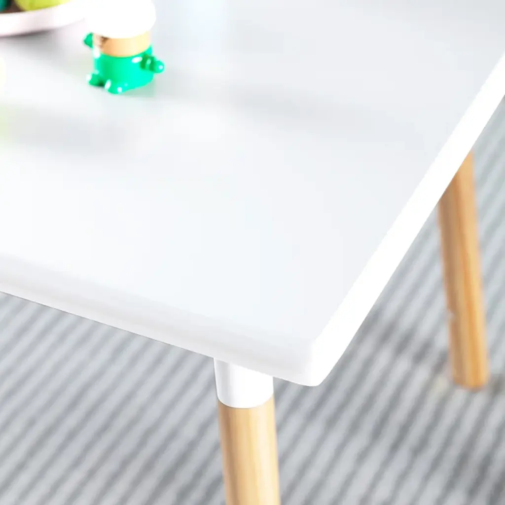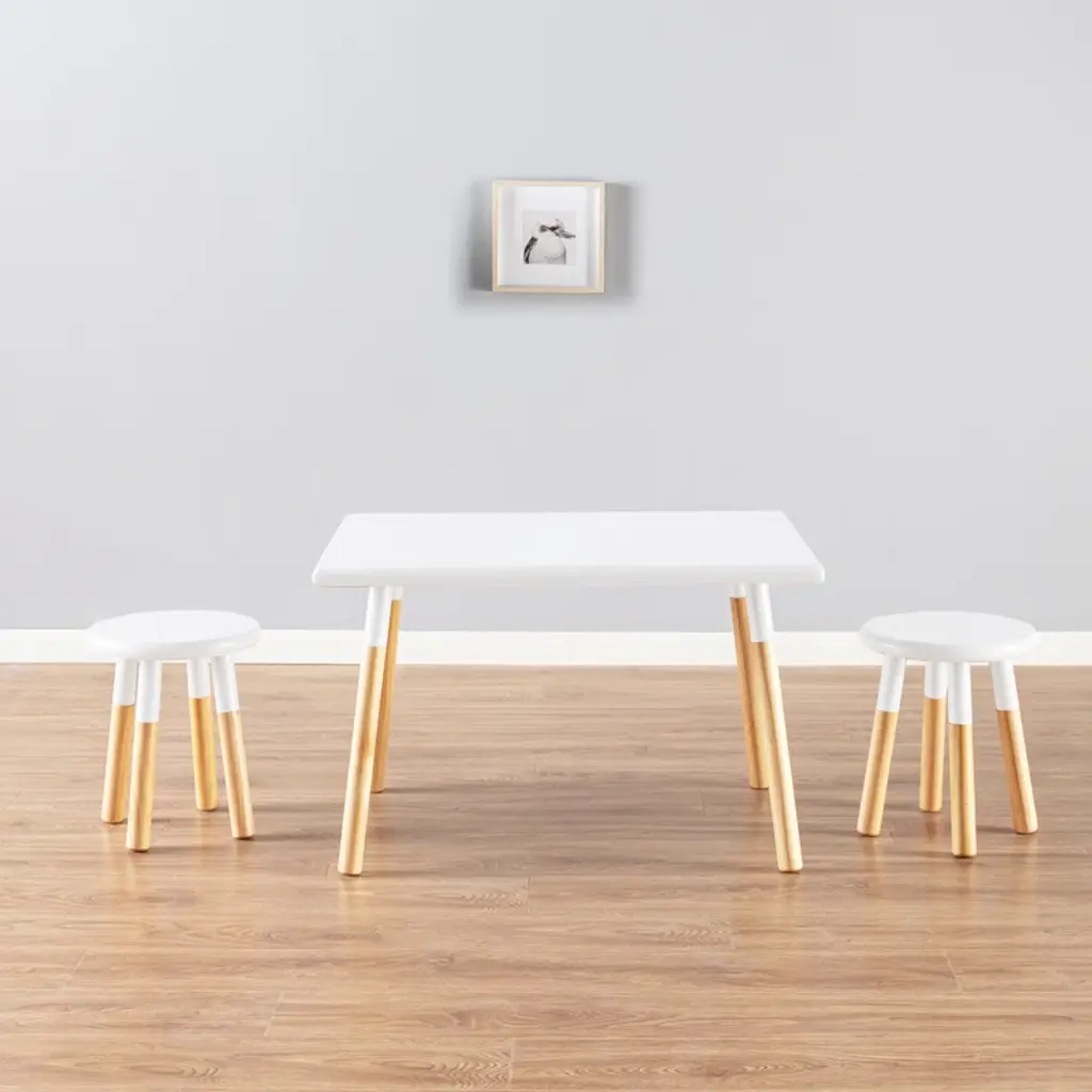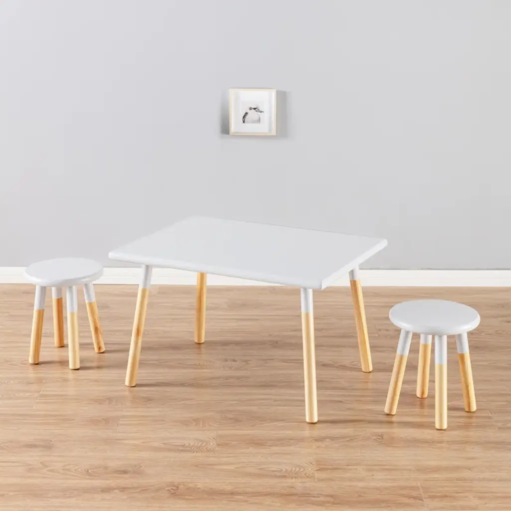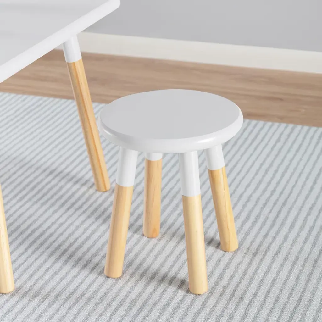 This 3-piece writing table and stool set give your little one a playful spot to draw and construct their most creative masterpieces. It comes with a table and two stools, all made from engineered wood with a two-toned matte finish that works well with any color palette. The 31.44" wide table is an ideal place for tea parties, craft time, and board games. The stool provides enough room for tiny tots up to 7 years old. Plus, we love that the scratch-resistant surface is easy to clean when little messes occur, and stands up to dings and dents.