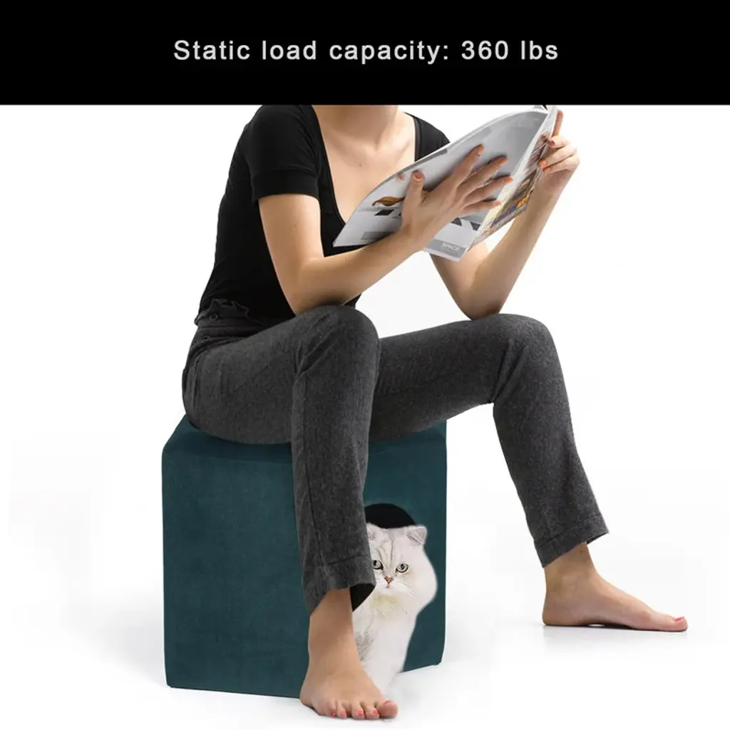 ULTRA COMFORT & SUPPORT-- Made of medium-density fibreboard (MDF) and soft velvet fabric, making this ottoman lightweight, easy to move, sturdy and comfortable for sitting. PERFECT PET HOUSE-- Cave design on the side of the footstool and a removable and washable mat inside the cave that comfortable place for your cat or small dog to play, nap, lounge, and more. WONDERFUL STORAGE PLACE-- The cave inside ottoman as handy storage space. It can be storage clothing, bed sheets, plush toys and more small item to maximize your space with style and function. LIGHTWEIGHT & EASY TO MOVE-- Such a modest and convenient design will surprise you a lot by decorating and beautifying your house without occupying much space: home, living room, bedroom, pet room, studio, etc. HEAVY LOAD CAPACITY & PRACTICAL-- Product Dimension:15.9"" x 15.3""; Weight Capacity: 250 lbs. Adding the perfect modern accent to your room.