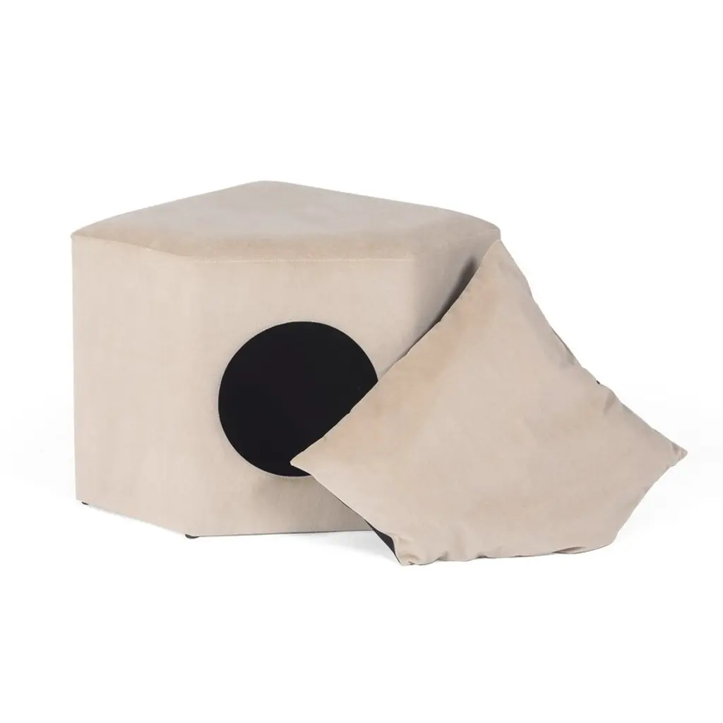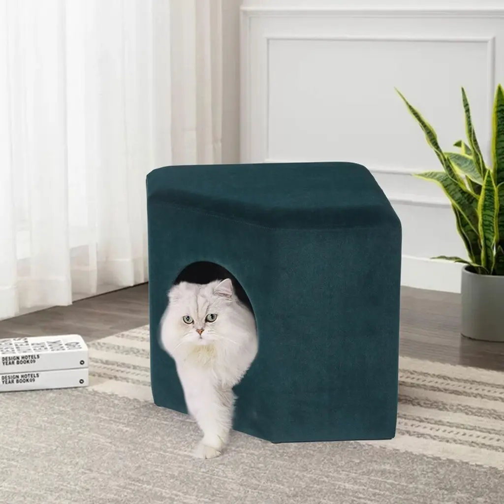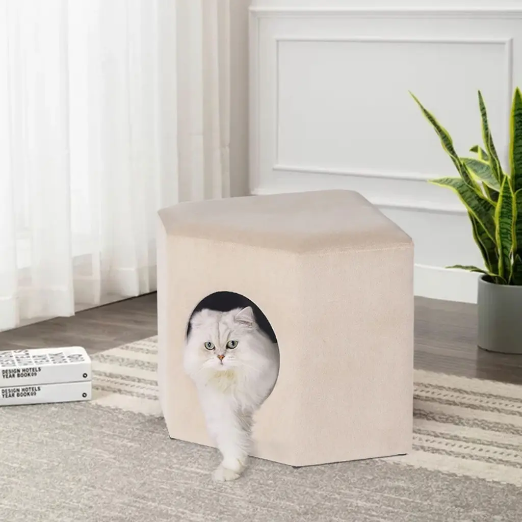 Adeco Cat Dog Condo Ottoman Square Foot Stool With Cave Inner Pad Small - Beige