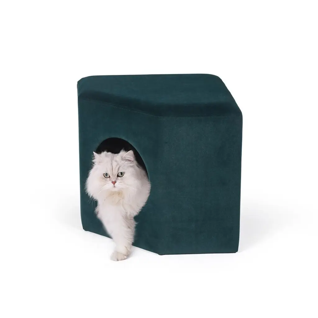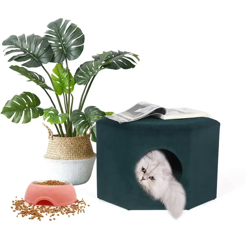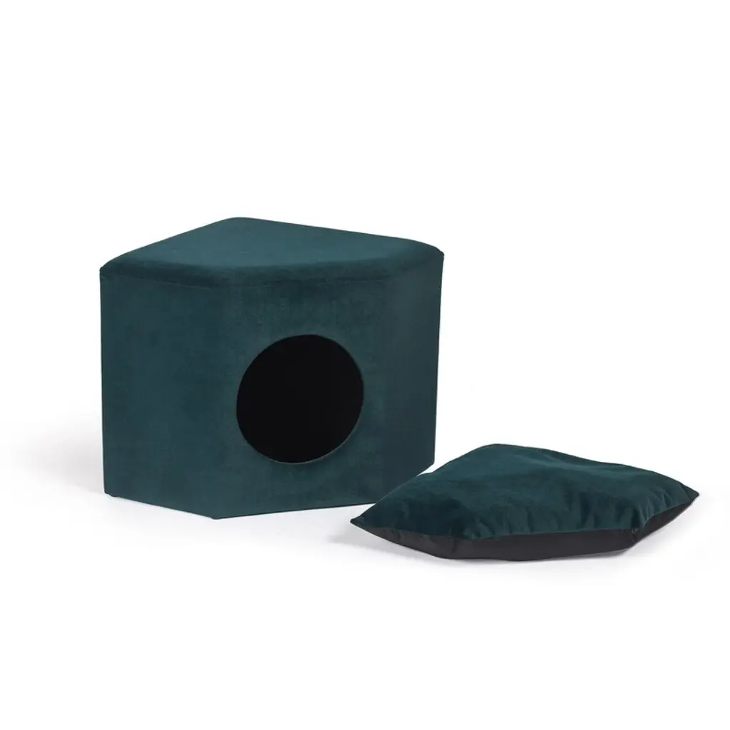 Adeco Cat Dog Condo Ottoman Square Foot Stool With Cave Inner Pad Small - Beige