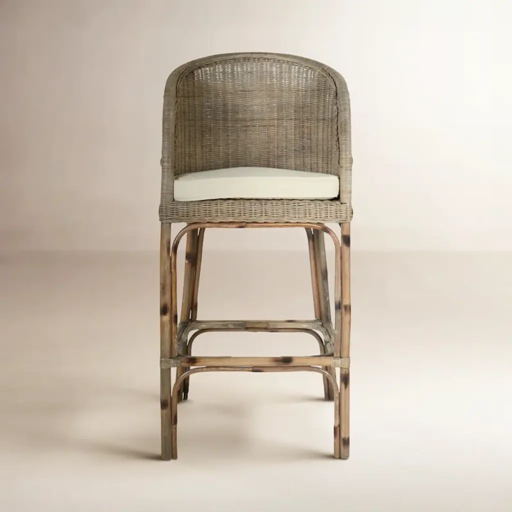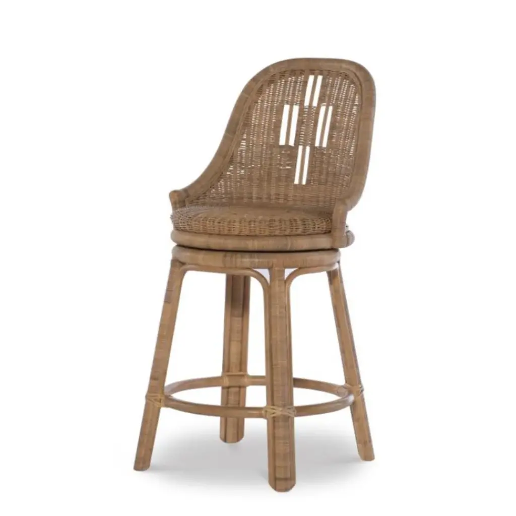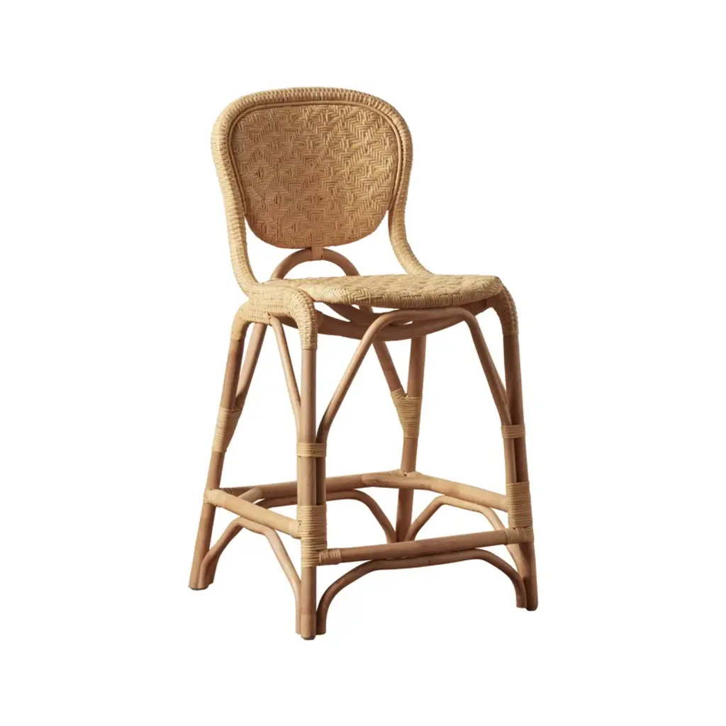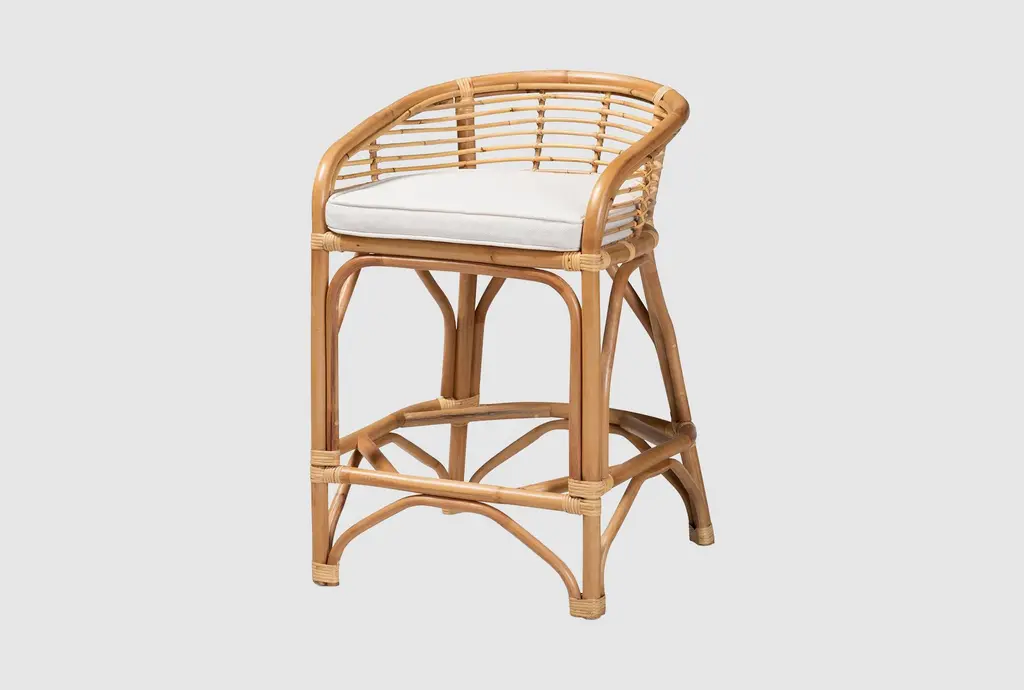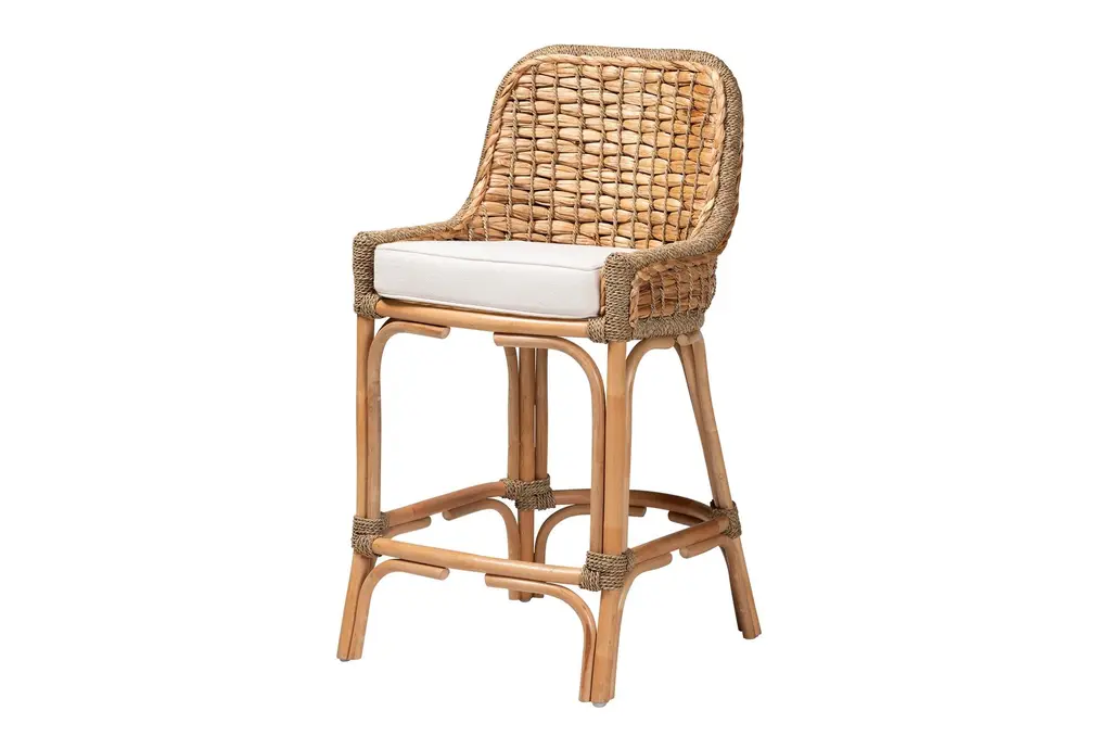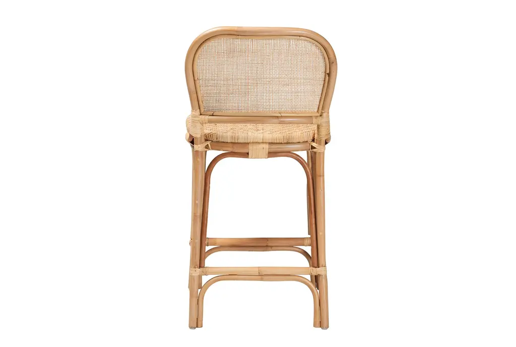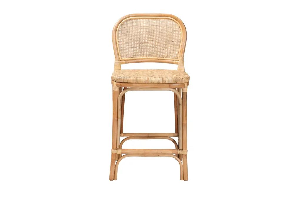 Adrena Modern Bohemian Natural Brown Rattan 26" Counter Height Stool | Armless | Woven