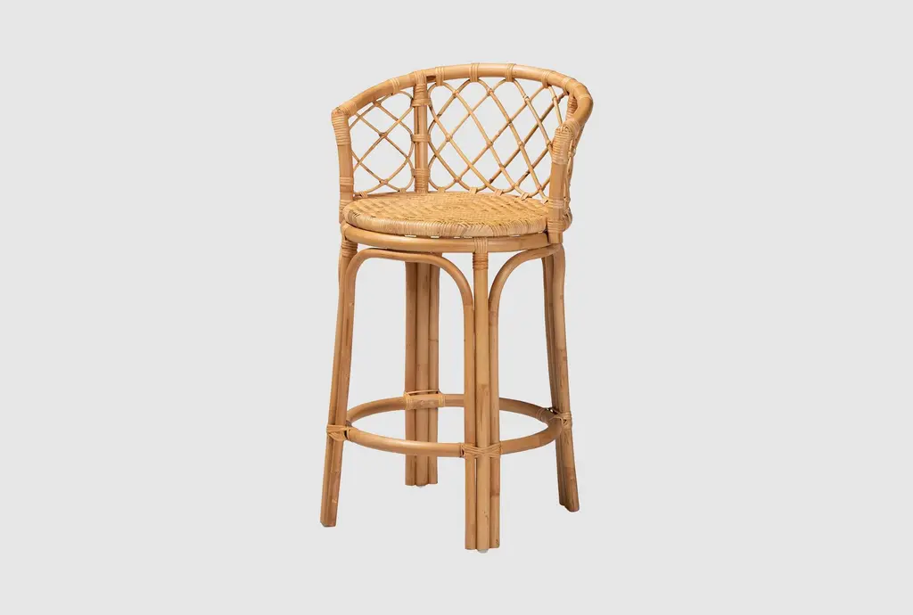 Enhance your dining room with the Adrena Modern Bohemian Natural Brown Rattan 26" Counter Height Stool. This armless stool features a woven design that adds a touch of modern style to any space. The natural brown color and rattan material create a warm and inviting atmosphere.