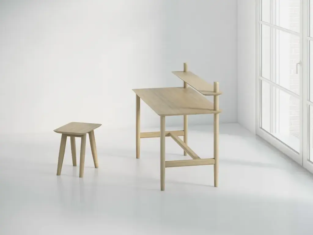 Bench AETAS – newly interpreted footstool of former times. Can be used as a bench with a handle in the middle, a backrest or a stool.Standard seat height: 45 cm