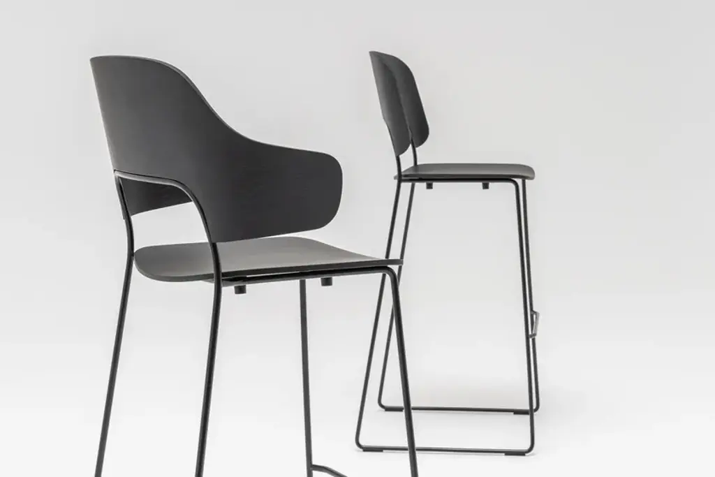 Manufactured to reflect the best features of Scandinavian design – AFI high stool proves to be a significant element of any interior regardless of the leading style. Effortlessly adapting to the given situation, AFI superbly fulfils its task in various types of spaces, from residential interiors and offices to hotels, restaurants as well as canteens.AFI high stool is offered in two variants. The idea behind the option with the backrest was to mirror the design of the AFI chair but elevate the user higher off the ground simultaneously granting new possibilities. The sitting position is supported by the frame which contour ends slightly above the veneer plywood seat. Both variants provide a feet rest thanks to the beam between the frame legs.The backrest and seat in two oak options and the universal black matte frame ensure that each user will find their ideal configuration.