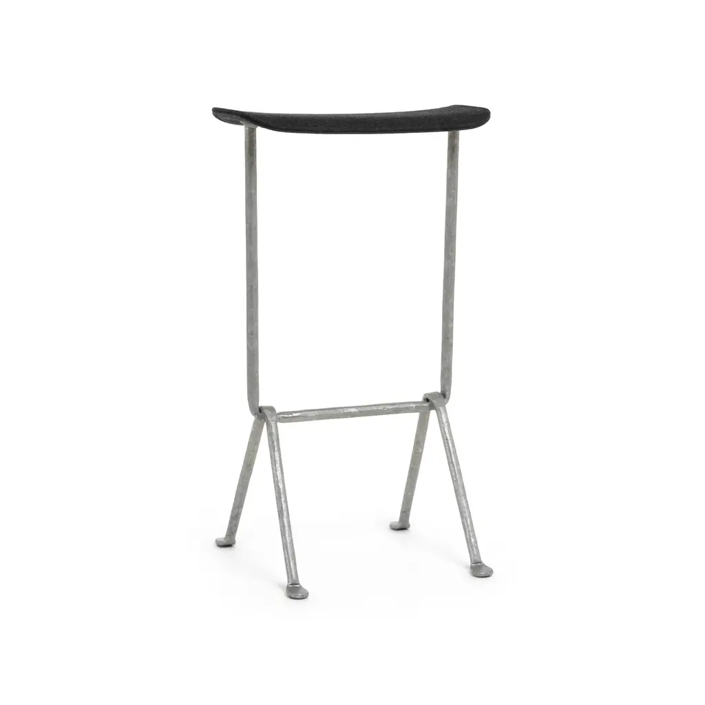 With its characteristic clean lines and sturdy base in tubular black powder-coated steel, tethered with cross bars for support, the Afteroom Stool comes in three heights, making it easy to slide up to a bar, counter or table. Boasting a high standard of craftsmanship and durability for long-lasting use, in customizable upholstery the stool brings added comfort, character and tactility to interiors while its sleek, minimalist profile ensures it fits seamlessly into any setting.