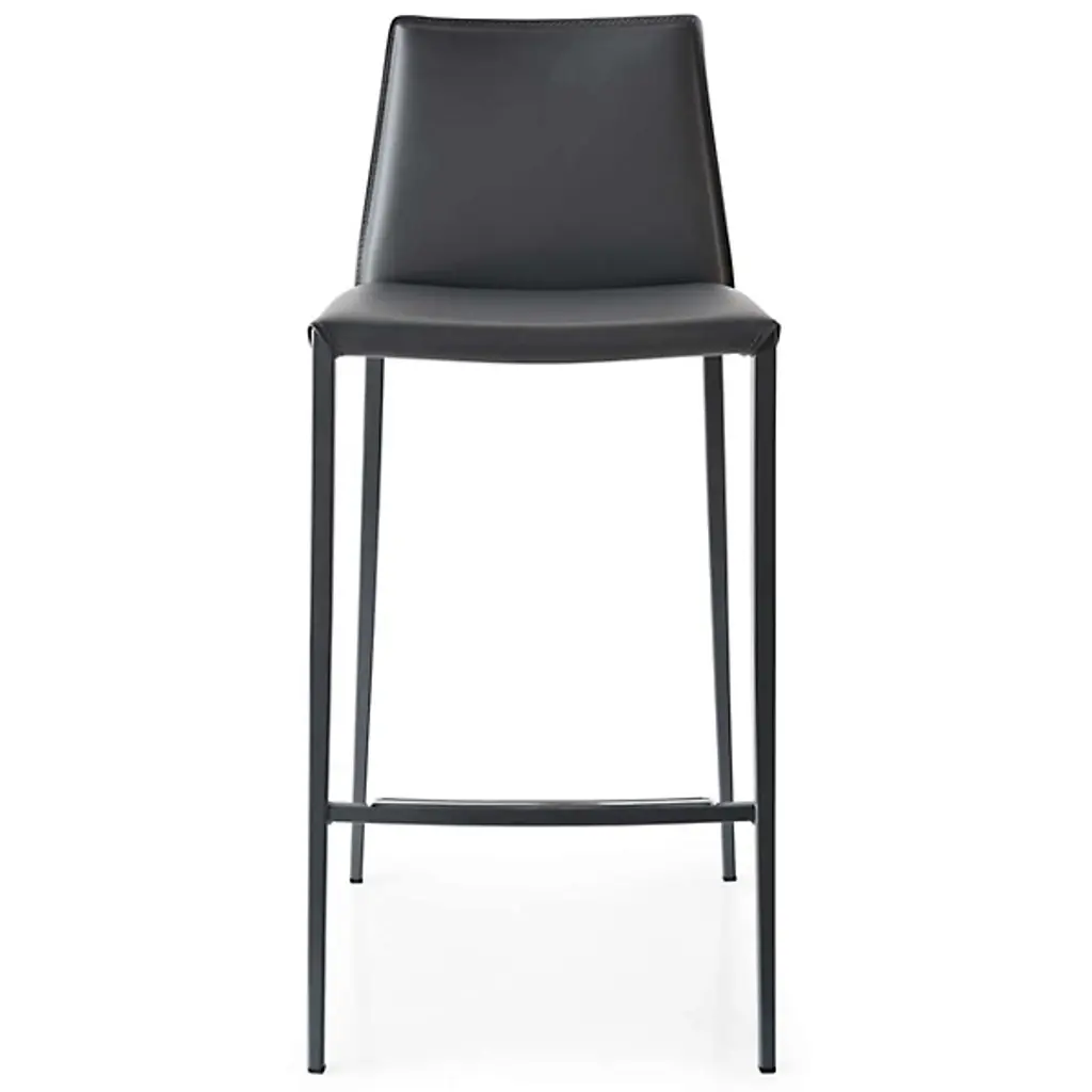 Minimal and uniform, the Calligaris Aida Stool stands tall with its metal frame upholstered in regenerated leather. Its sleek design features 4 slim legs which are made of coated metal and finished in the same color as its seat. Add Aida to your home bar or high dining table for a sophisticated, modern look.