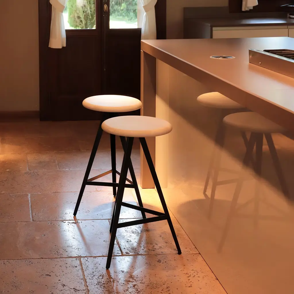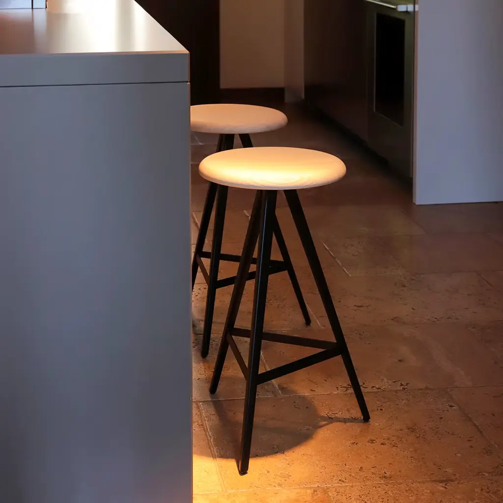 Aky 61 Round Natural Ash & Black Metal Stool By Emilio Nanni
