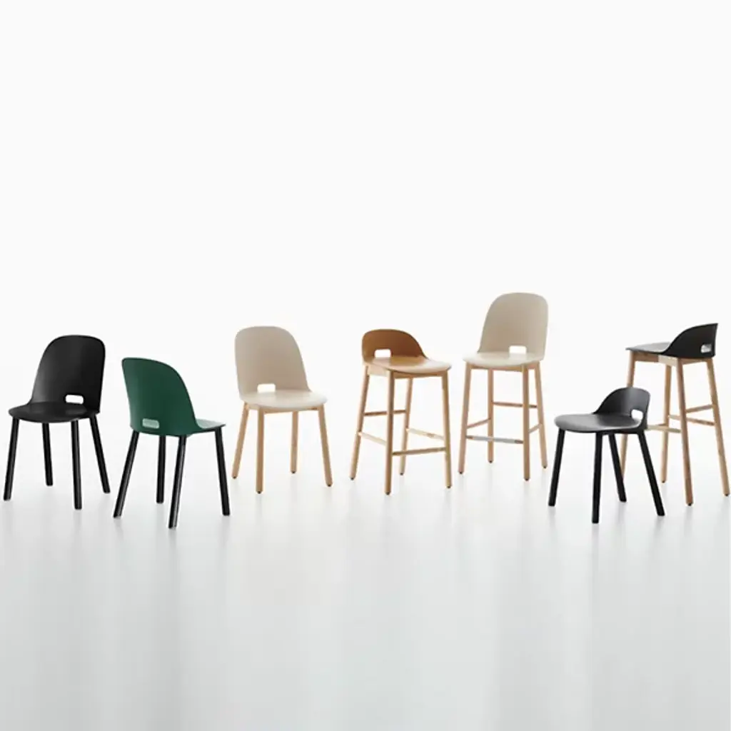 Emeco and Jasper Morrison collaborated to create the Alfi Collection; and in doing so, the Alfi Stool, High Back was designed. In correlation in the shared gratitude towards invisible qualities beneath simplicity the stool exemplifies a minimalism where subtly is the key feature. The stool seat is made of 100% recycled wood polypropylene and with the base being constructed of ash wood; all of which are highly durable materials and guaranteed to last. The Alfi Stool, High Back comes with a 5-year warranty.