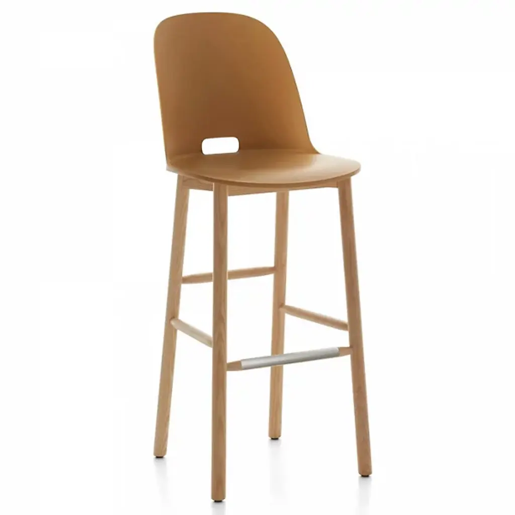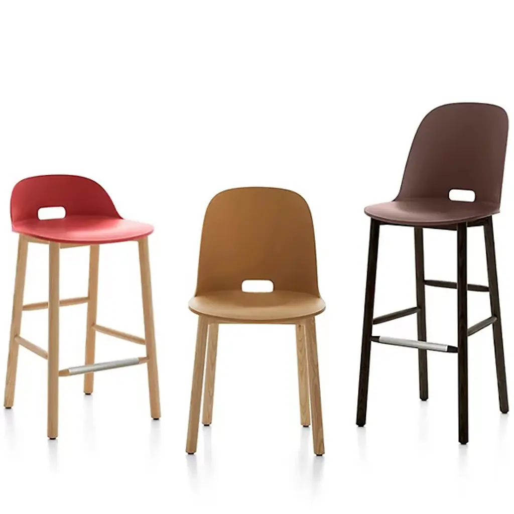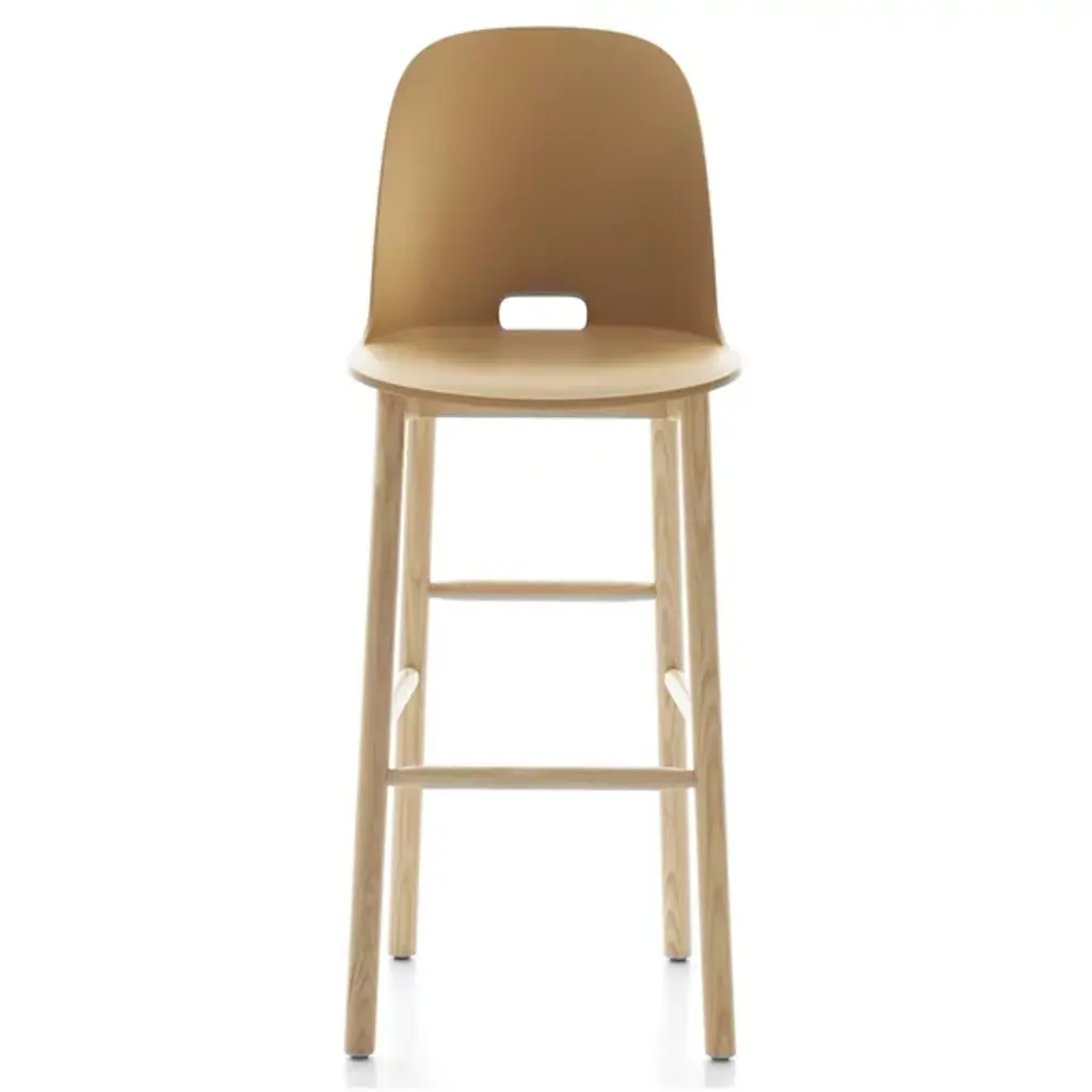 Emeco and Jasper Morrison collaborated to create the Alfi Collection; and in doing so, the Alfi Stool, High Back was designed. In correlation in the shared gratitude towards invisible qualities beneath simplicity the stool exemplifies a minimalism where subtly is the key feature. The stool seat is made of 100% recycled wood polypropylene and with the base being constructed of ash wood; all of which are highly durable materials and guaranteed to last. The Alfi Stool, High Back comes with a 5-year warranty.