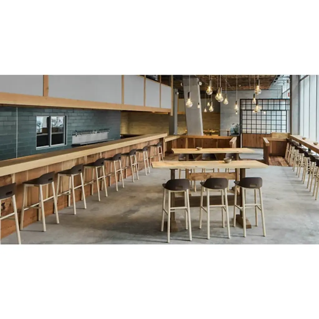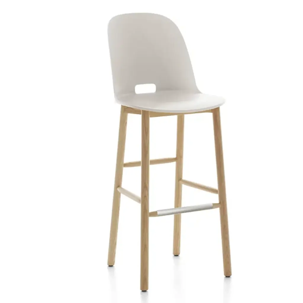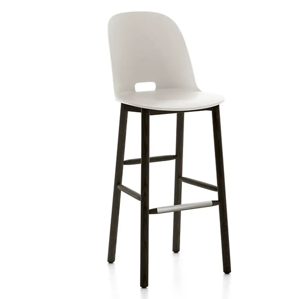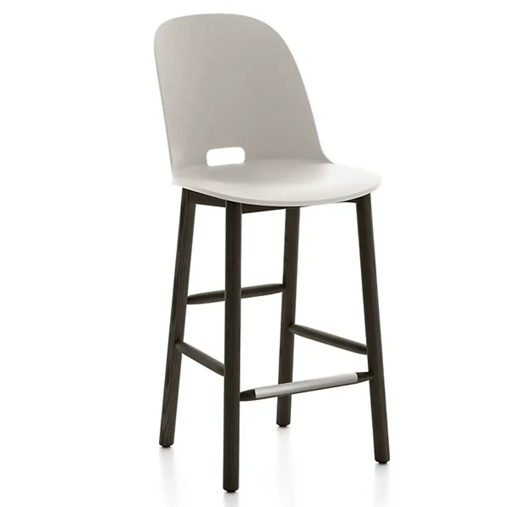 Emeco and Jasper Morrison collaborated to create the Alfi Collection; and in doing so, the Alfi Stool, High Back was designed. In correlation in the shared gratitude towards invisible qualities beneath simplicity the stool exemplifies a minimalism where subtly is the key feature. The stool seat is made of 100% recycled wood polypropylene and with the base being constructed of ash wood; all of which are highly durable materials and guaranteed to last. The Alfi Stool, High Back comes with a 5-year warranty.
