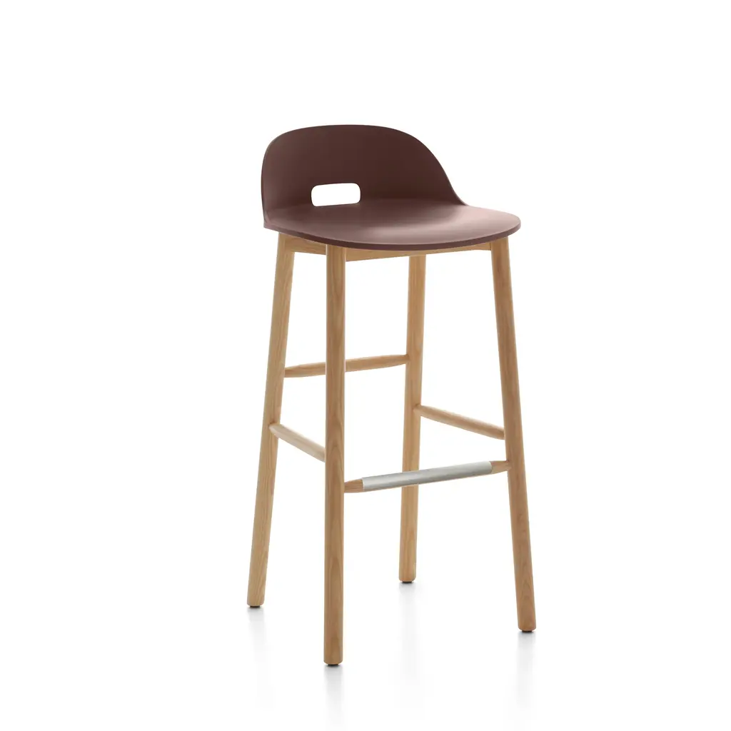 Alfi by Jasper Morrison, 2015 Alfi is a family of chairs and stools with seats made from 100% recycled materials , combined with a base in sustainably sourced solid ash. The seats, with a high or low back, are made of recycled polypropylene mixed with wood fiber. The wood particles create a speckled texture that gives the surface a warmer, more natural touch. Engineered for comfort and strength. BIFMA certified. Made in the USA.