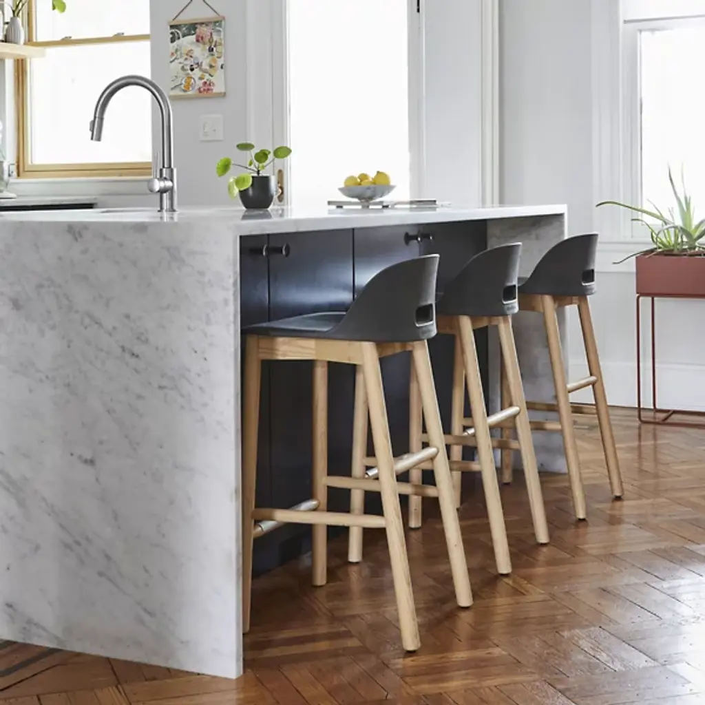Emeco and Morrison designed the Alfi Stool, Low Back; together they constructed and engineered the Alfi Collection with the principle of what you cannot see is just as valuable as what you can see. The chair follows Emeco and Morrison’s share appreciation towards invisible characteristics behind simplicity. Crafted of recycled materials made of ash and 100% reclaimed wood polypropylene, conceived to be comfortable and robust to last for years. The Alfi Stool, Low Back guarantees a 5-year warranty.