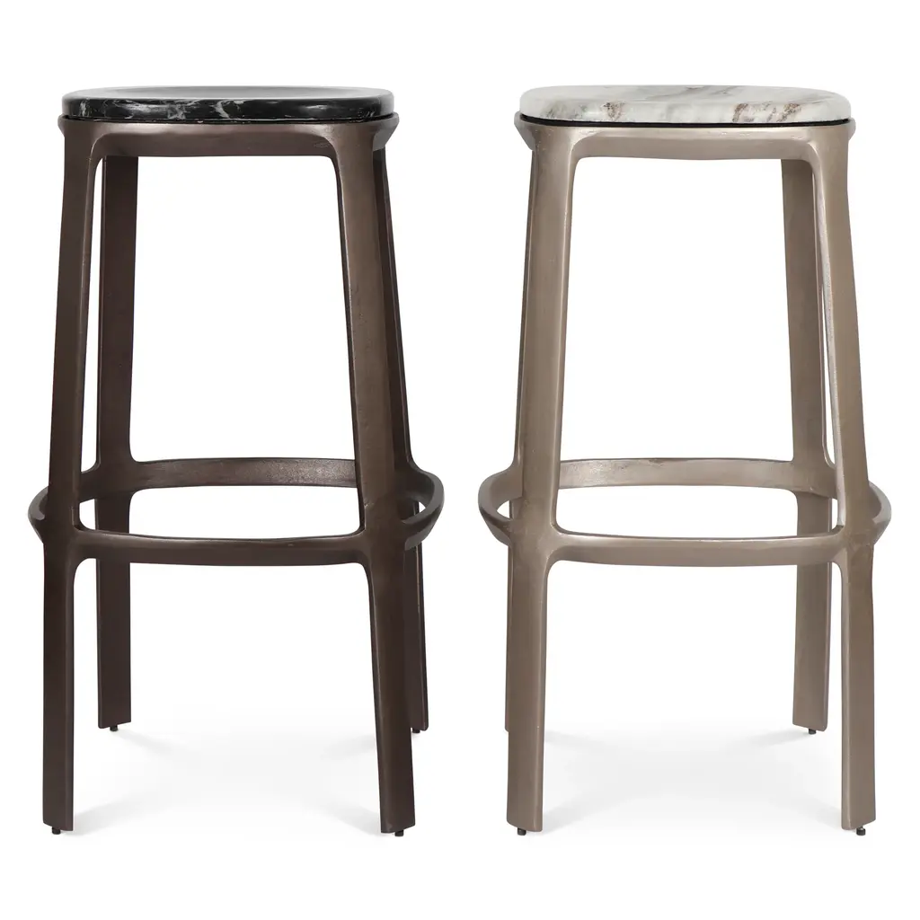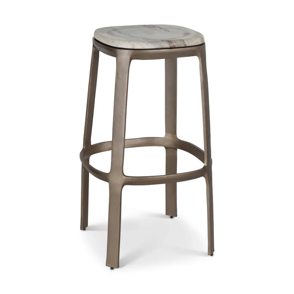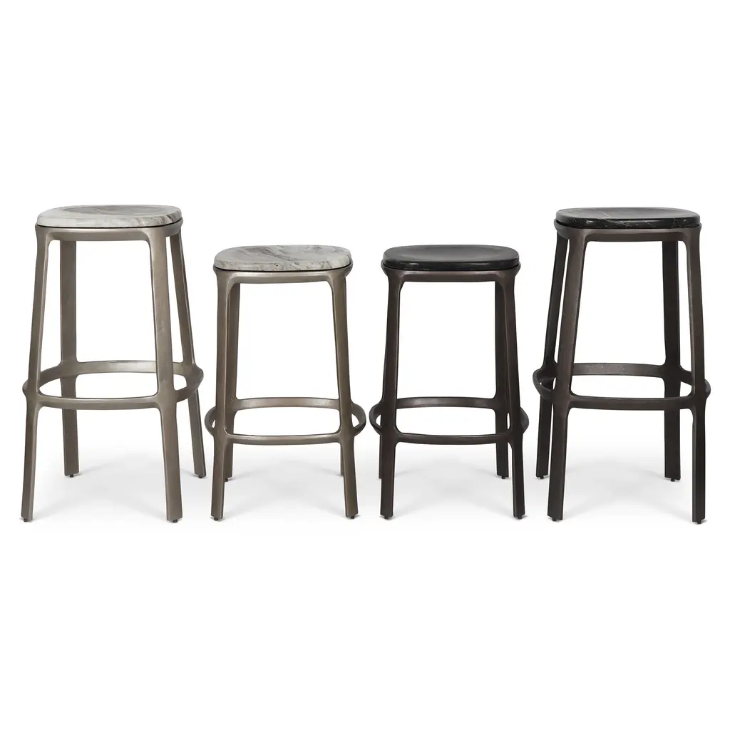 Elevate your dining space with the sophisticated Alfie Stool from Urbia. Available in both bar and counter heights, this stool features a cast aluminum frame and a beautifully carved marble seat for endless allure. Perfect for adding a touch of luxury to a kitchen island or at-home bar. Highlights