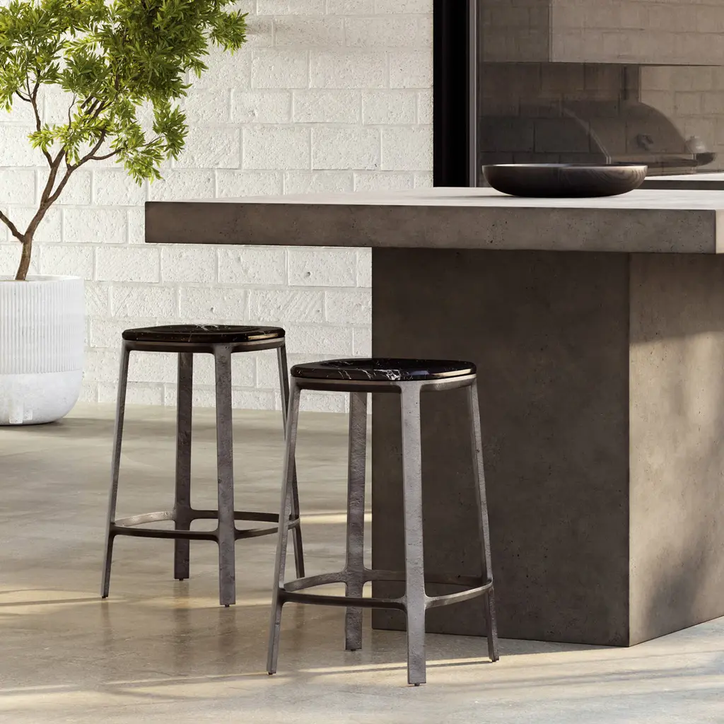 Elevate your dining space with the sophisticated Alfie Stool from Urbia. Available in both bar and counter heights, this stool features a cast aluminum frame and a beautifully carved marble seat for endless allure. Perfect for adding a touch of luxury to a kitchen island or at-home bar. Highlights