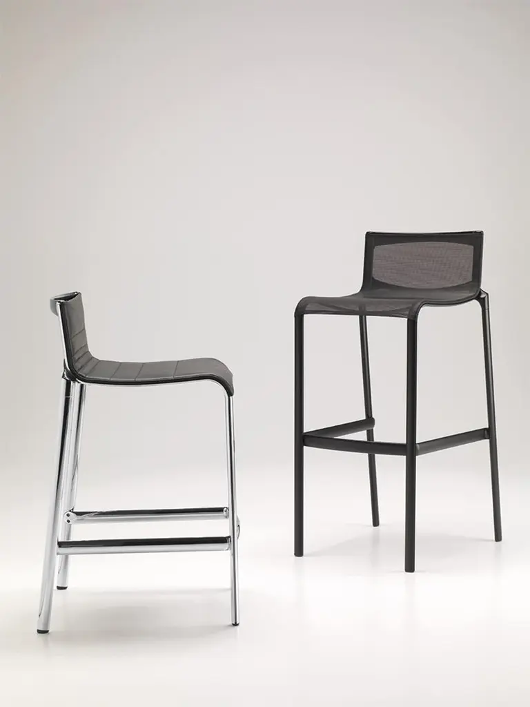 Alias Frame 41b High Stool In Black Upholstery With Chromed Aluminium Frame