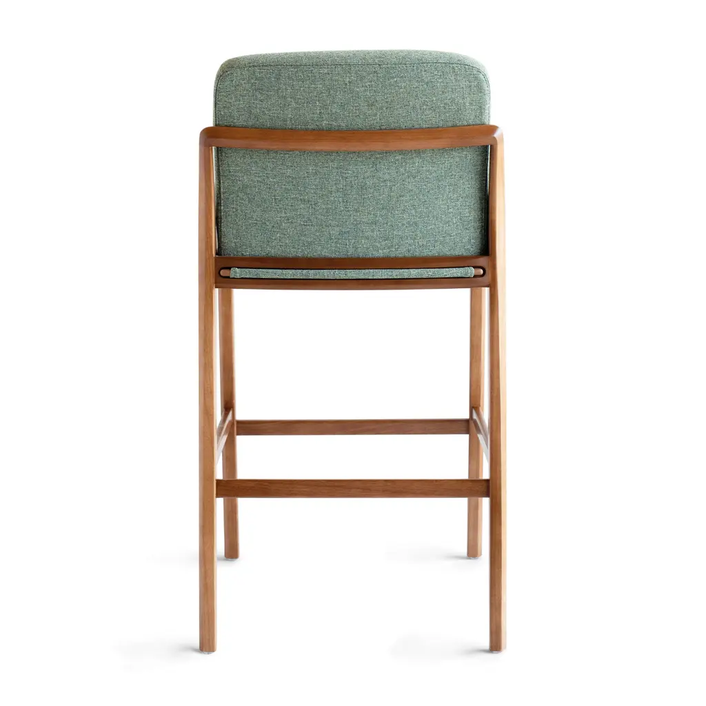 Elevate your dining or home bar space with the Alice Stool from Sossego. Offering sustainably luxury and deep comfort, this stool features plush foam cushions and a solid wood structure. The intricate dowel design, wrapped in leather or upholstery, adds visual interest and strength. For each stool sold, a tree is planted in Brazil, making it a sustainable and stylish addition to any room. Highlights