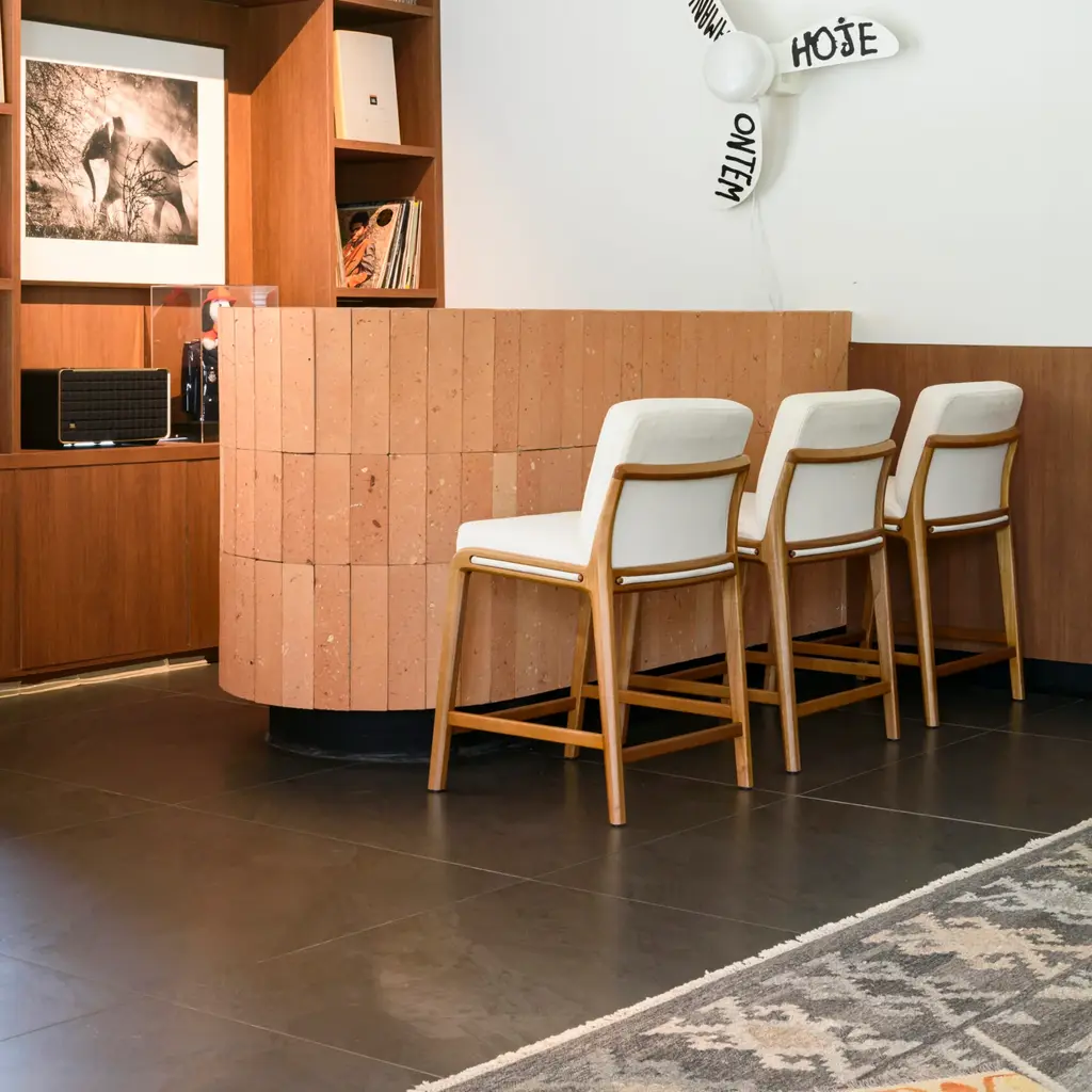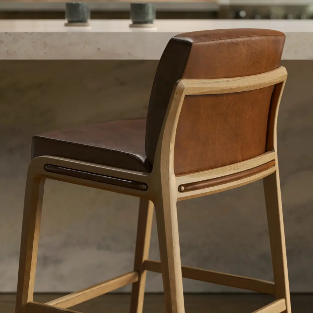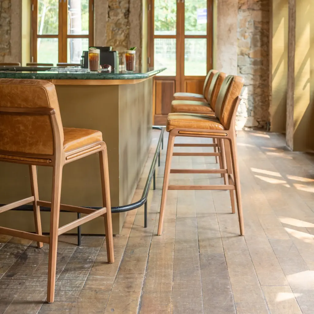 Elevate your dining or home bar space with the Alice Stool from Sossego. Offering sustainably luxury and deep comfort, this stool features plush foam cushions and a solid wood structure. The intricate dowel design, wrapped in leather or upholstery, adds visual interest and strength. For each stool sold, a tree is planted in Brazil, making it a sustainable and stylish addition to any room. Highlights