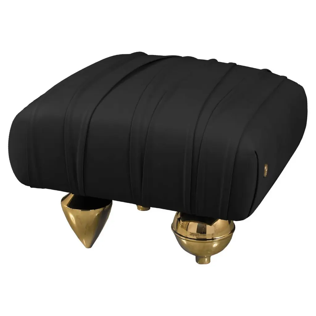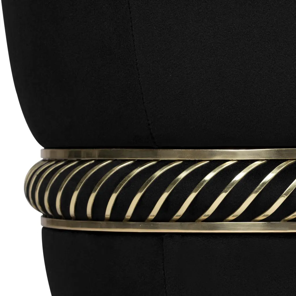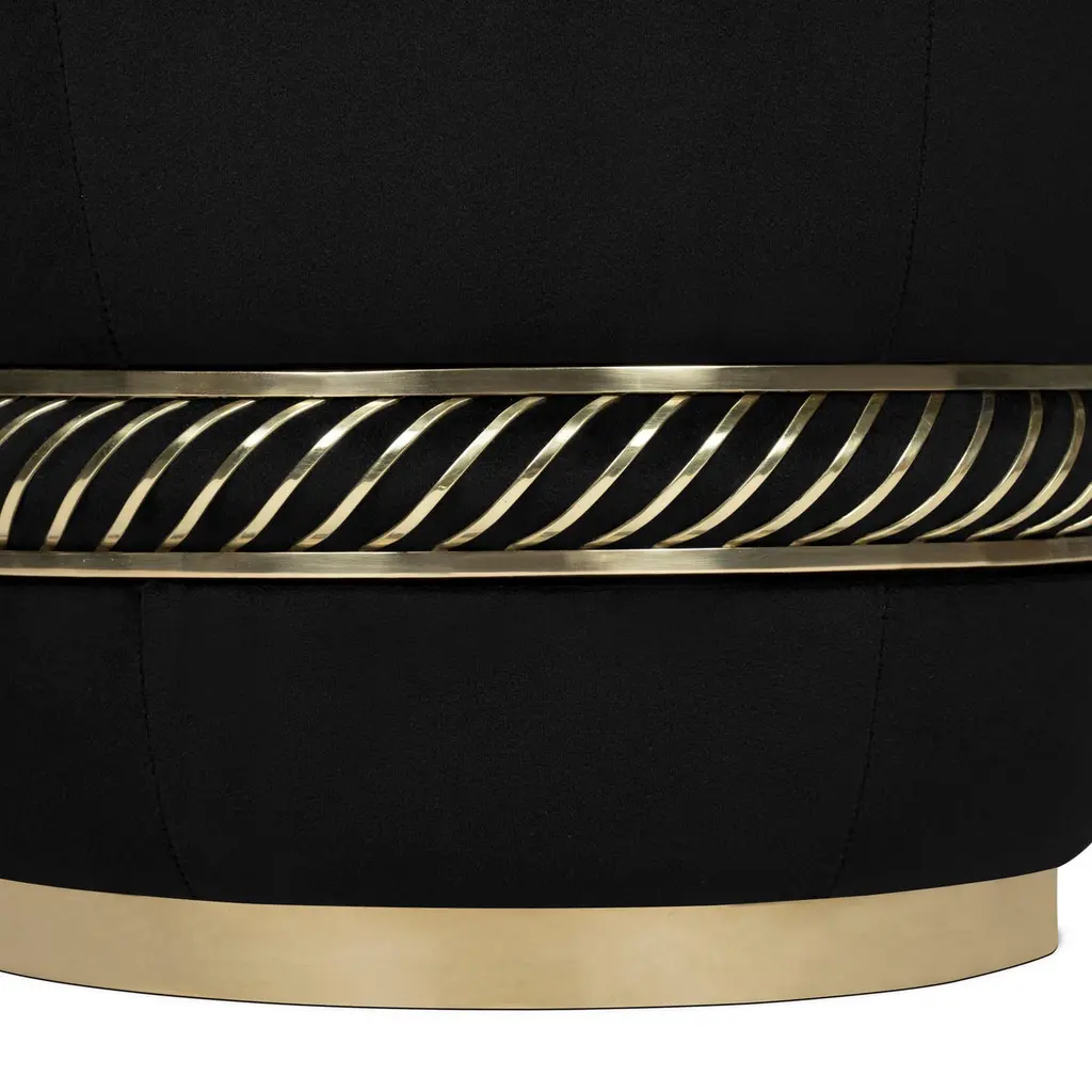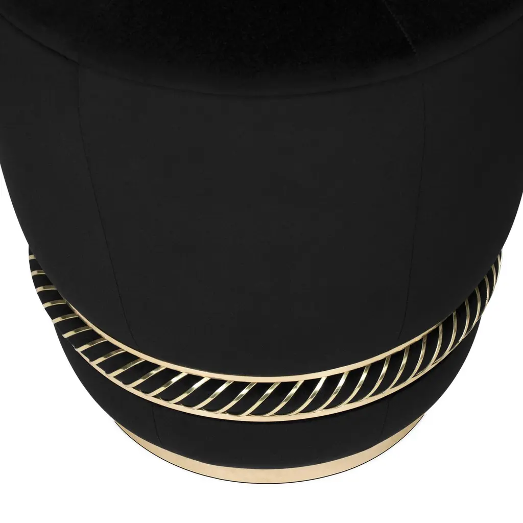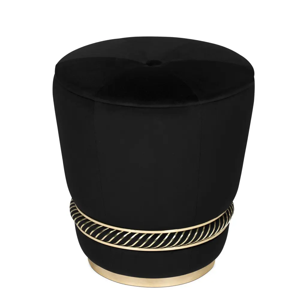 Stool Alliance with structure in solid wood,upholstered and covered with black velvet fabric, with polished brass base and with polished brass torsaded trim above the base.