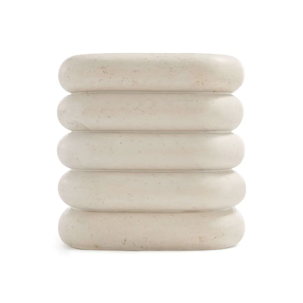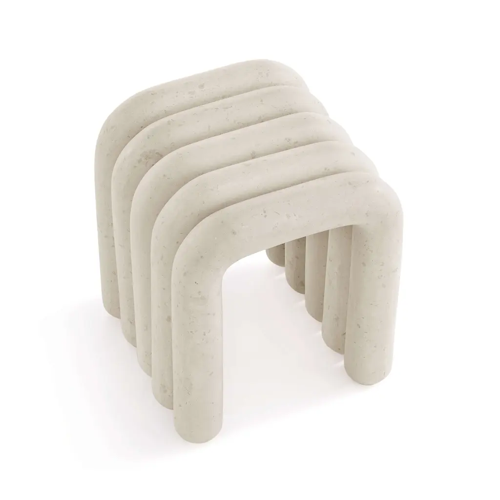 Alma Modern Square Channel Waterfall Curved Stone Side Table Stool