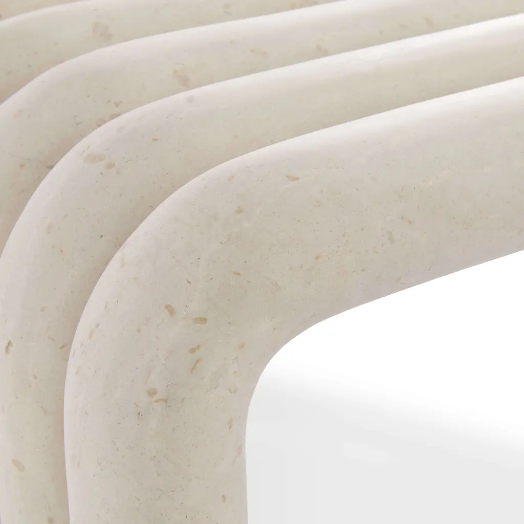 The essence of modern luxury, unveiled. The Alma Modern Square Channel Waterfall Curved Stone Side Table Stool is where sleek design meets tactile indulgence. Its curved stone construction invites you to run your fingers along its stone surface and admire its smooth contours, adding an element of sophistication to any space. Also available in a matching coffee table bench.