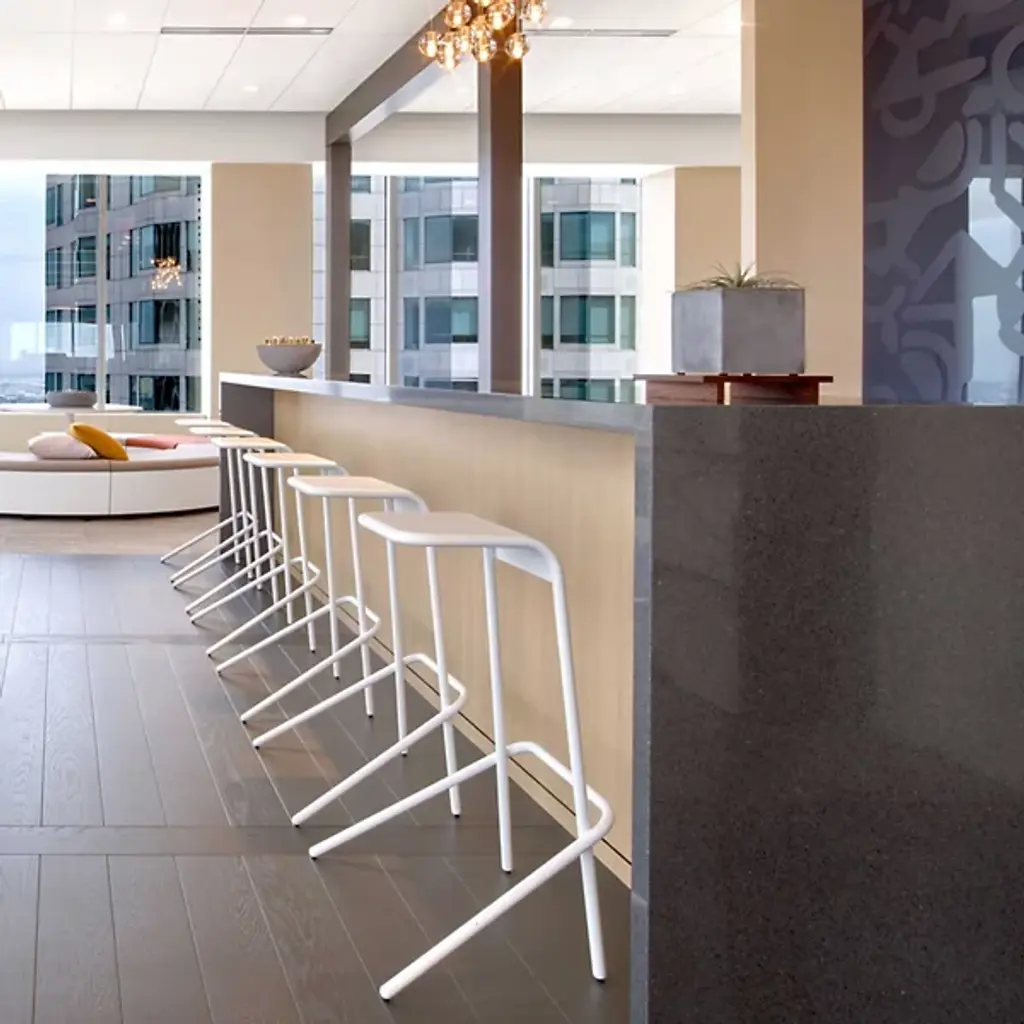 Give lasting contemporary appeal to an elevated bar or counter space with the Alodia Stool from Cappellini. An open, angular design from Todd Bracher and Nendo, it’s made in Italy and exemplifies his views on an insightful, meaningful design that’s always improving. It rests on black plastic feet, ascending via a tubular metal frame. A small bracket forms the rear legs, bracing parallel metal tubes that support a slim, strong seat of laser-cut sheet steel. Each stool is stackable with others, its balanced, open form providing a sculptural and expressive character.