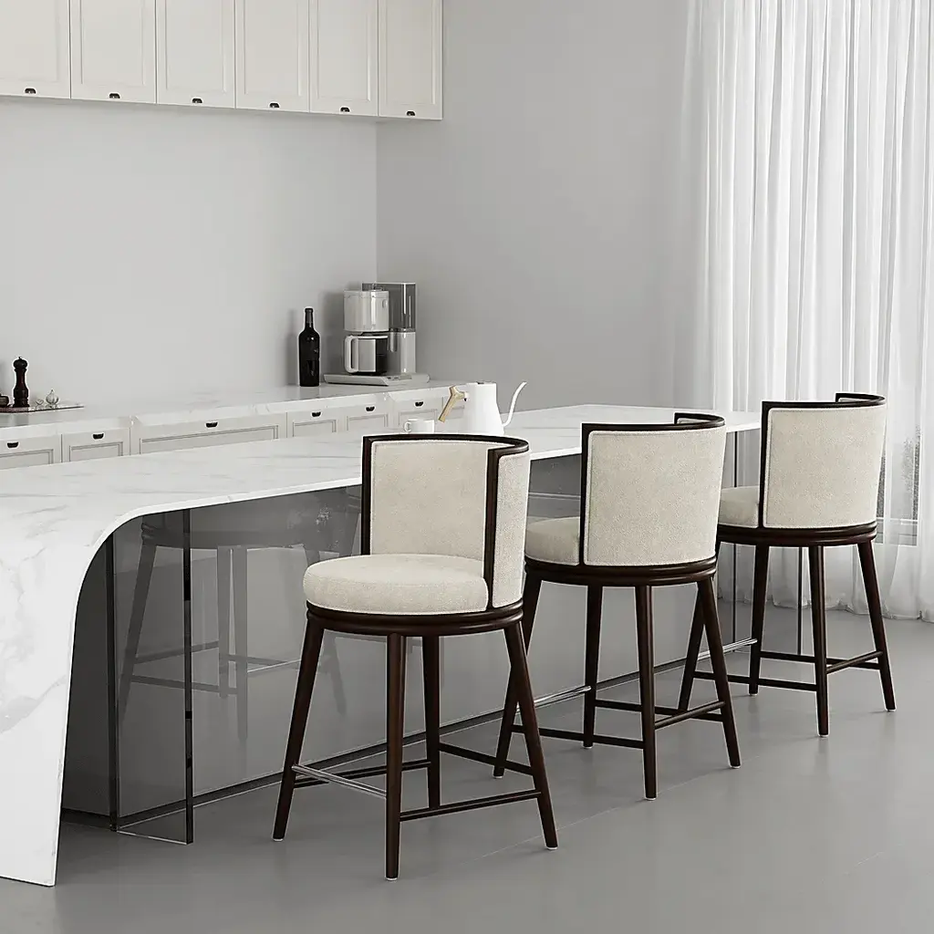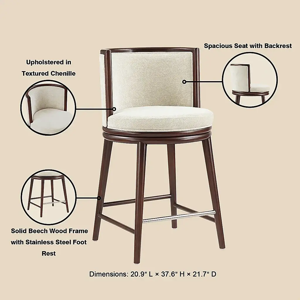 Elevate your home with the timeless elegance of the Alphadream I cream counter height stool. Designed with sophistication and comfort in mind, each stool features a sturdy beech wood frame, plush foam cushioning, and sumptuous upholstery that invites you to relax in style. A sleek metal footrest adds a touch of luxury, making this stool a seamless blend of form and function. Whether adorning a modern kitchen island or a chic home bar, these stools bring warmth, refinement, and a statement of contemporary elegance to any space.