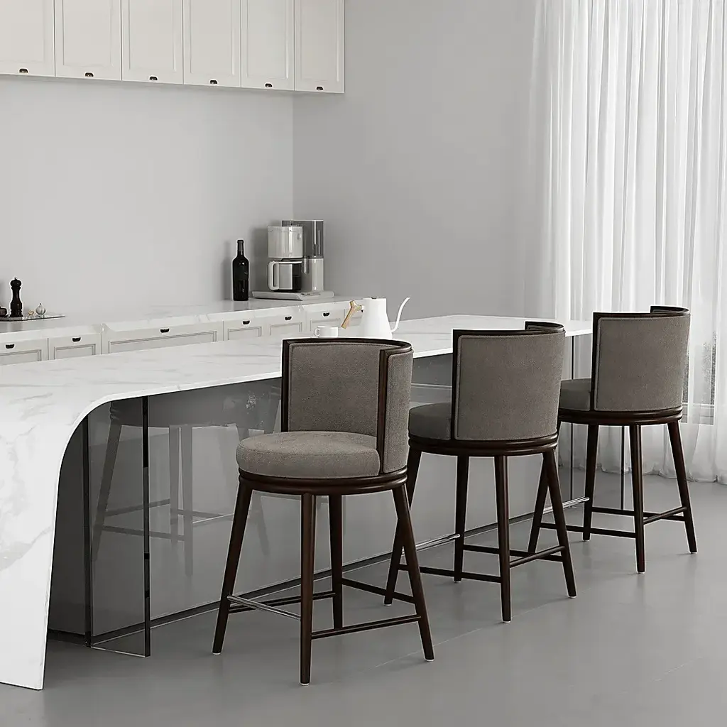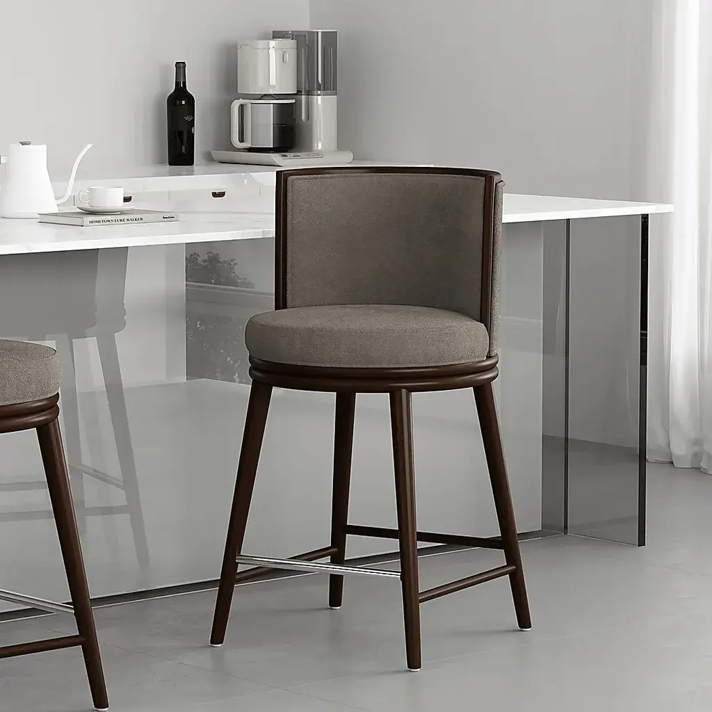 Elevate your home with the timeless elegance of the Alphadream I dove gray counter height stool. Designed with sophistication and comfort in mind, each stool features a sturdy beech wood frame, plush foam cushioning, and sumptuous upholstery that invites you to relax in style. A sleek metal footrest adds a touch of luxury, making this stool a seamless blend of form and function. Whether adorning a modern kitchen island or a chic home bar, these stools bring warmth, refinement, and a statement of contemporary elegance to any space.