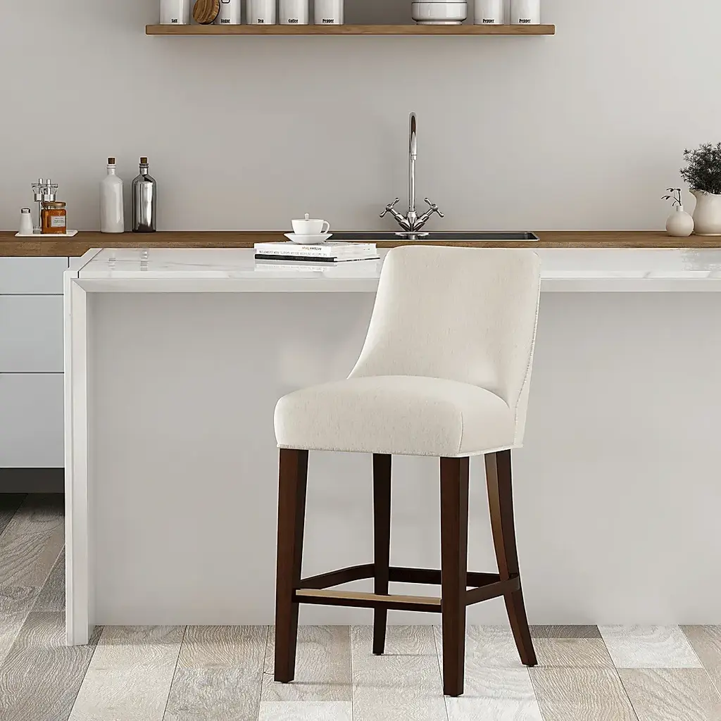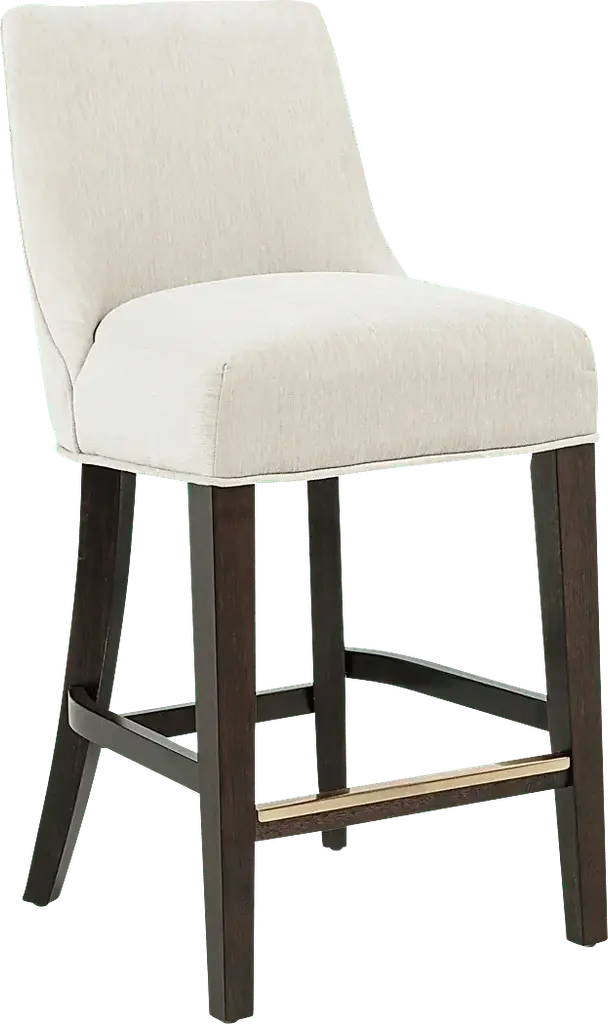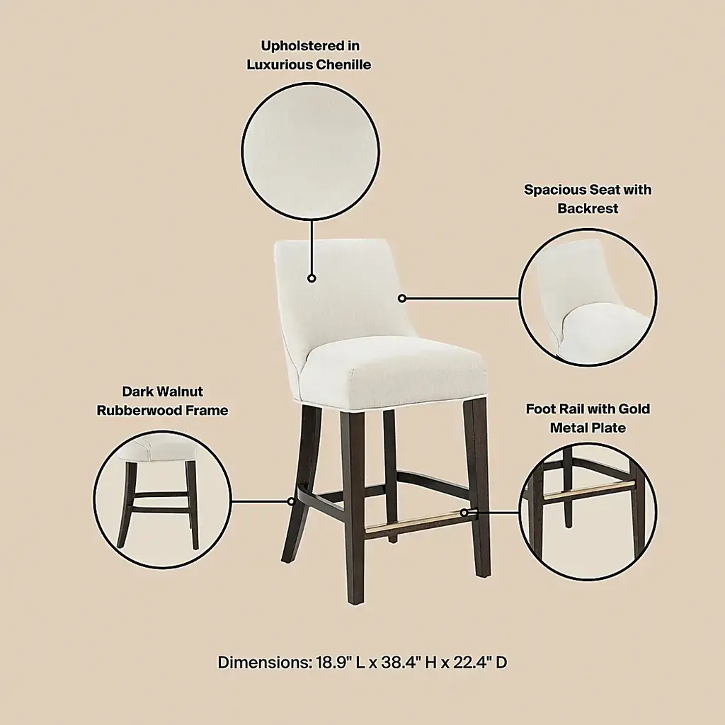 Simple sophistication meets everyday comfort in the Alpireyen cream counter height stool. Wrapped in plush chenille upholstery, its gently curved silhouette and tapered rubberwood legs evoke understated elegance with a mid-century modern edge. Whether you're sipping your morning coffee or hosting evening cocktails, the supportive foam seat and sturdy footrest promise style and stability. Finished in a rich dark walnut, this stool adds warmth and refinement to any space, bringing a polished presence to your kitchen or bar area. Customer assembly is required.