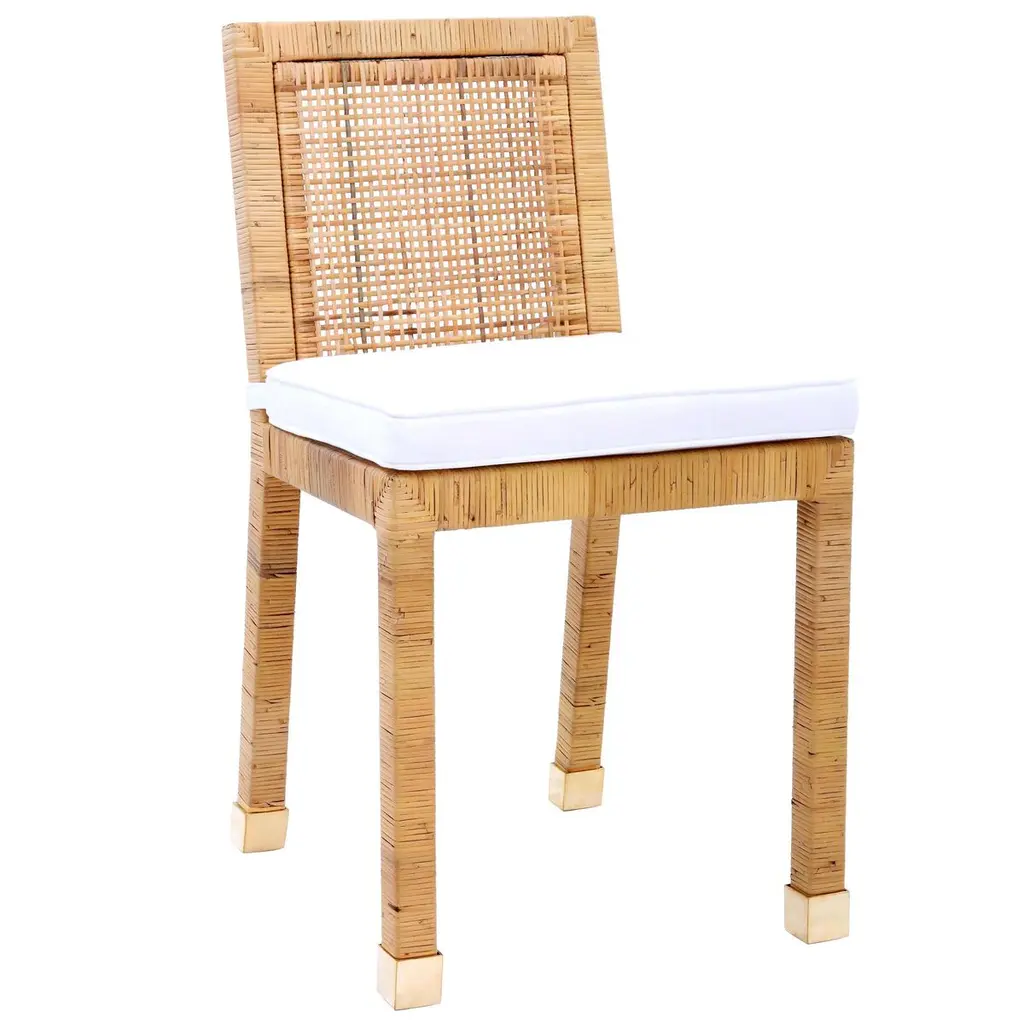 Amara Rattan & Cream Linen Stool