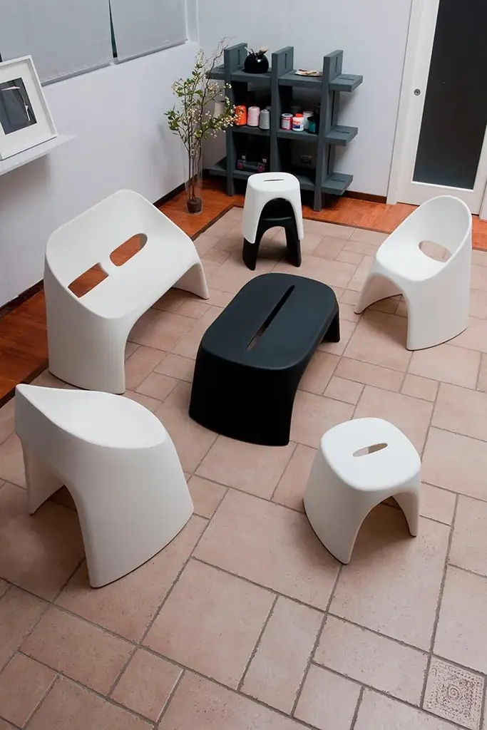 Amélie Sgabello is a product that belongs to Amélie collection. The stool is stackable and it has got fluid and essential design, as the whole Amélie collection. The stool is a beautiful design product but it is also a functional object, which can solve space-related problems. The versatile and stackable stool is suitable for domestic settings, as living rooms and gardens, but also for contract and events, both for indoor e outdoor.