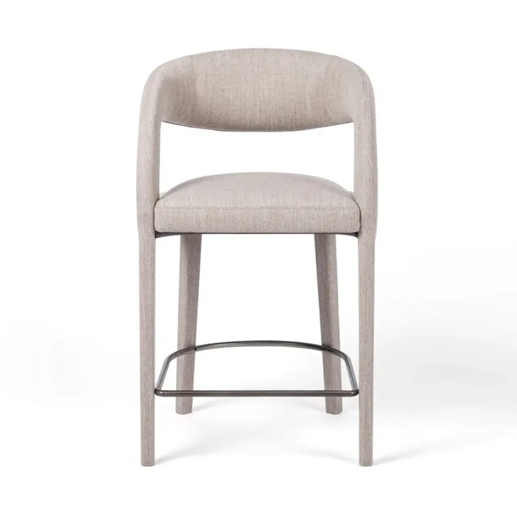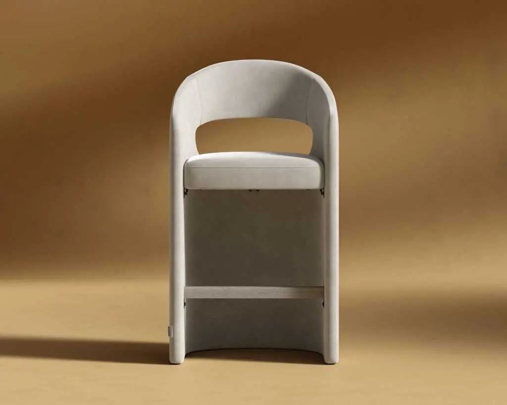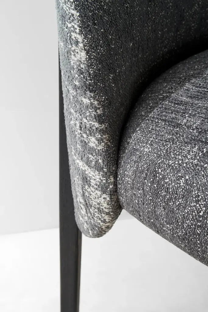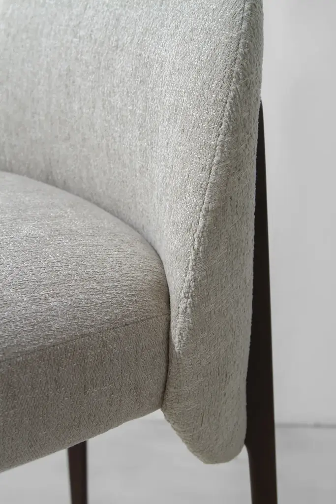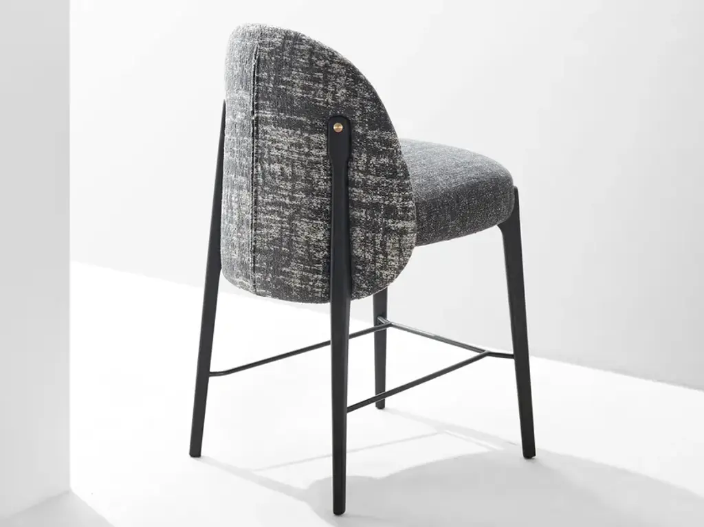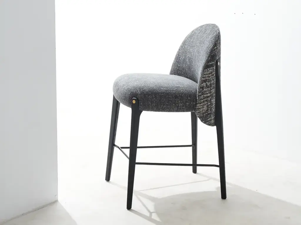 Designed with inspiration from the shape of a spade, the Ames chair features a smoked oak frame and a premium fabric cushion, designed to offer comfort while retaining our signature modern industrial finish.Ames is a collection of bar, counter and dining chairs. Laid-back, almost egg-like in shape, and fanning out towards the seating cushion on both sides, the design’s backrest is constructed from oak then fully upholstered in fabric or leather. In place of hidden joints, the chairs’ tapered oak legs are extended upwards onto seating cushions and backrests, affixed with brass details that gently call to mind District Eight’s signature combination of our favorite materials. Also featuring ensconcing armrests in other variations, the Ames collection can inspire a quiet sense of warmth and elegance in the heart of beloved spaces.