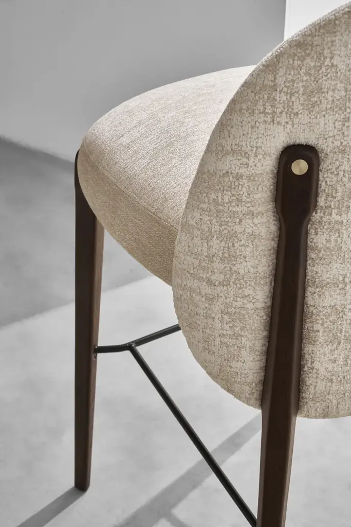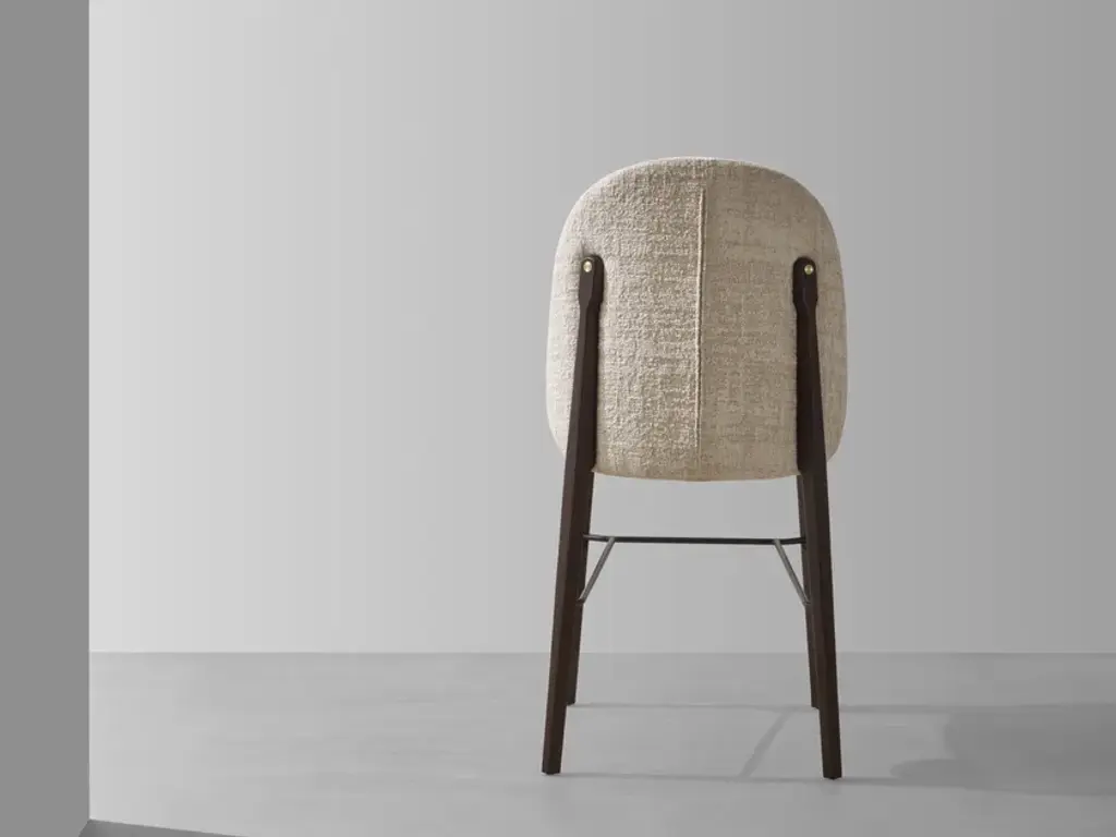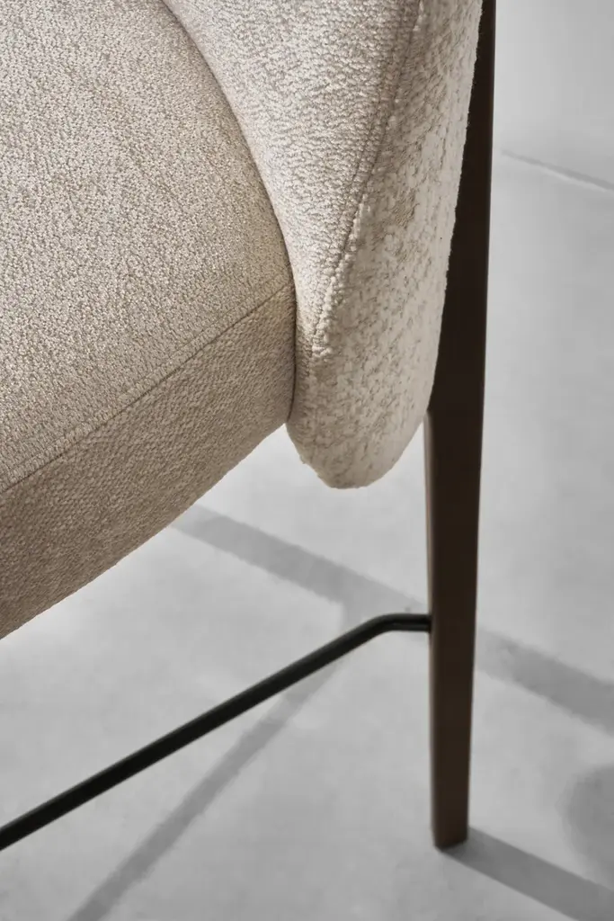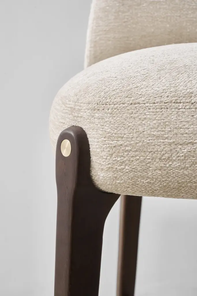 Designed with inspiration from the shape of a spade, the Ames chair features a smoked oak frame and a premium fabric cushion, designed to offer comfort while retaining our signature modern industrial finish.Ames is a collection of bar, counter and dining chairs. Laid-back, almost egg-like in shape, and fanning out towards the seating cushion on both sides, the design’s backrest is constructed from oak then fully upholstered in fabric or leather. In place of hidden joints, the chairs’ tapered oak legs are extended upwards onto seating cushions and backrests, affixed with brass details that gently call to mind District Eight’s signature combination of our favorite materials. Also featuring ensconcing armrests in other variations, the Ames collection can inspire a quiet sense of warmth and elegance in the heart of beloved spaces.