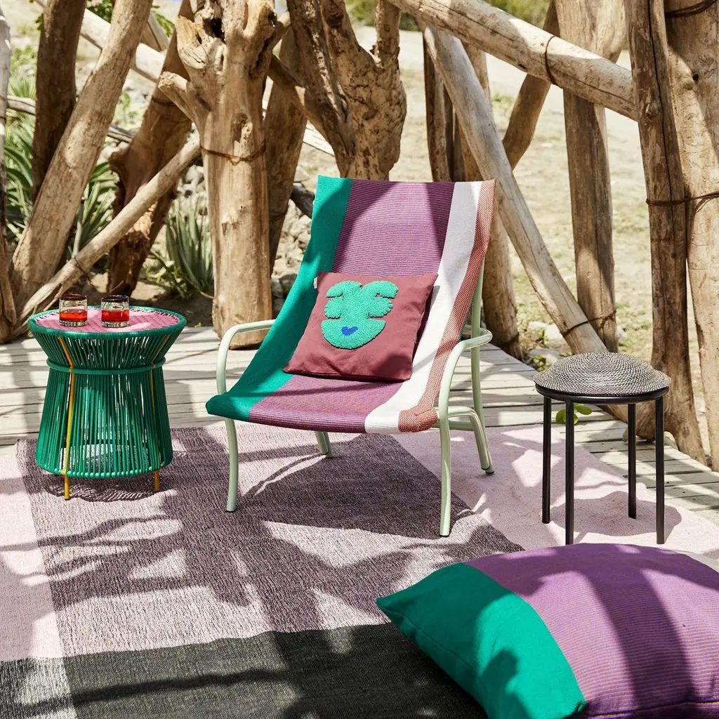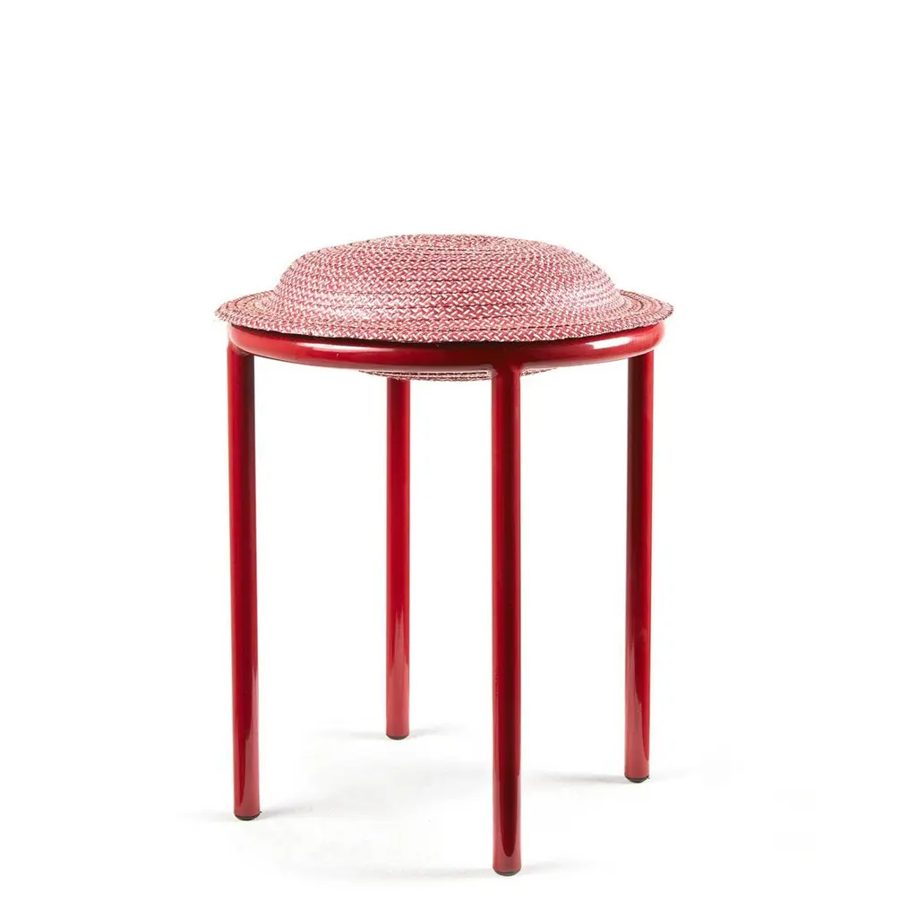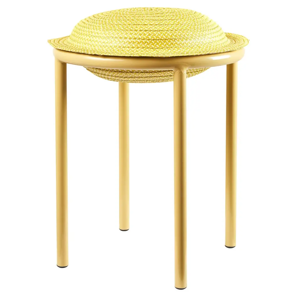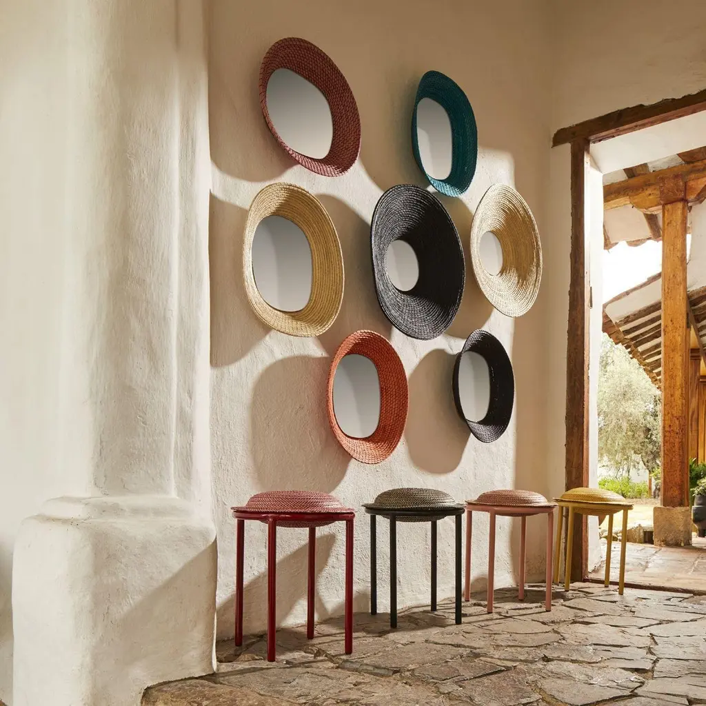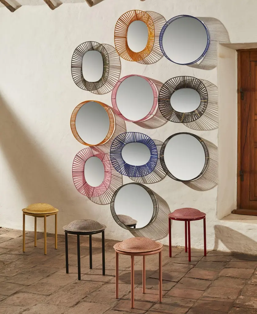 Indoor - The adorable Cana Stool, designed by Pauline Deltour, adds a fun pop of colour to any room. It’s round seat is braided by hand from caña flecha, a natural material which is obtained from the eponymous palmIt takes many steps of manual labour to createthe stool’s seat. First, the caña flecha leavesare dried and the veins removed with a knifeand a piece of leather to create sturdy strips.These are then dried in the sun before they arecoloured with natural dyes. Then the artisansbraid each seat by hand. The frame of thestool is made of powder-coated steel. Just thepreparation of all the caña flecha takes threedays, while the production of each stool takesfour days.