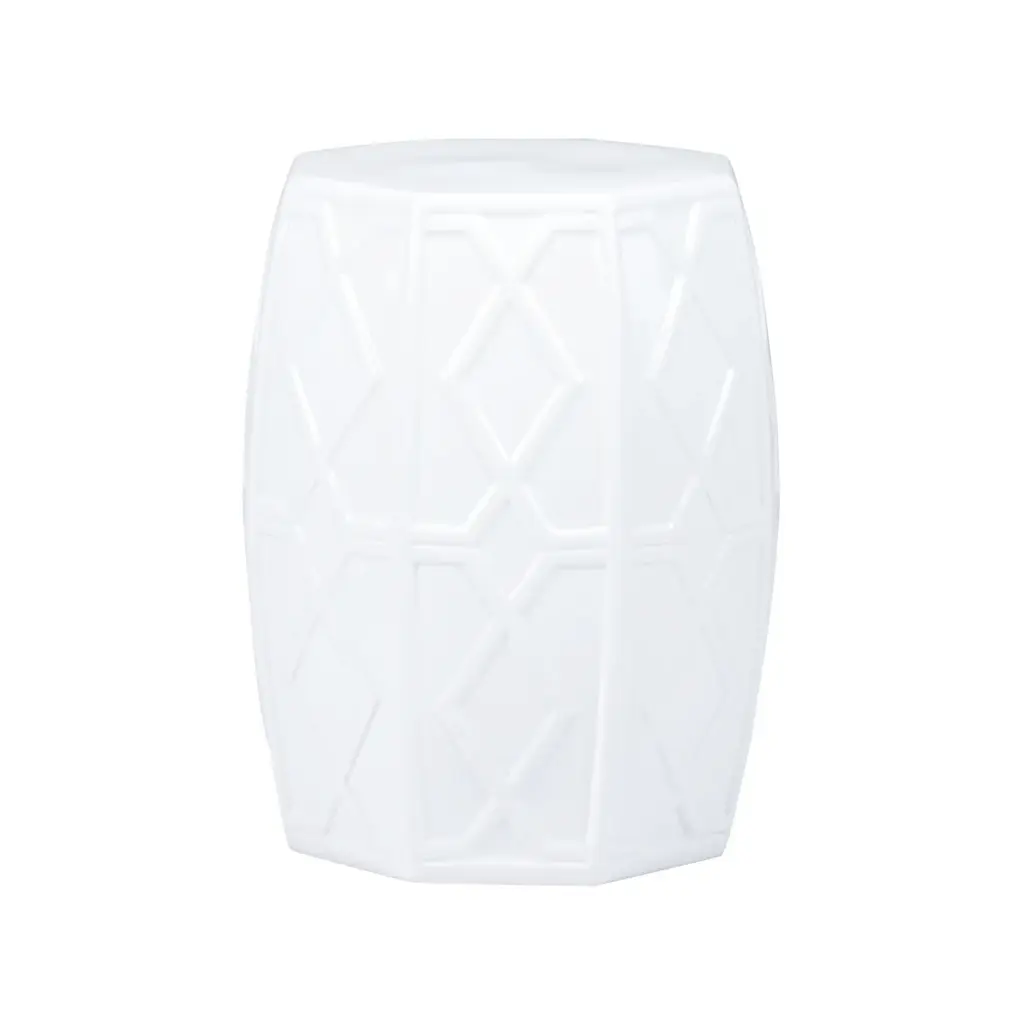 Charming ceramic garden stool in rich blue with diagonal design. Perfect as a stool, extra seating or as a side table. Designed by Shayla Copas.