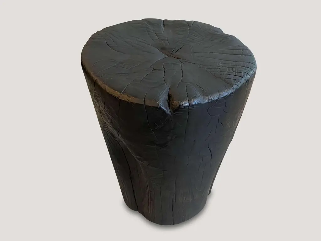 Andrianna Shamaris Charred Teak Wood Side Table Or Stool