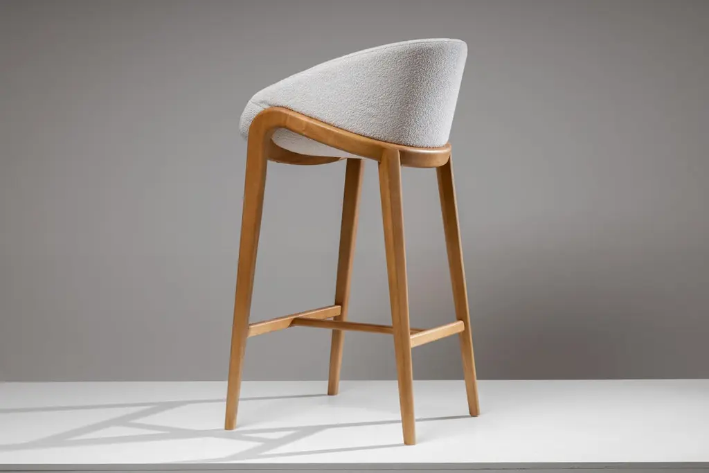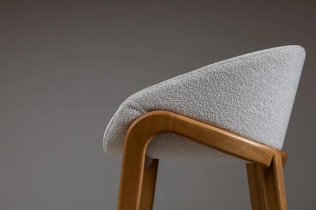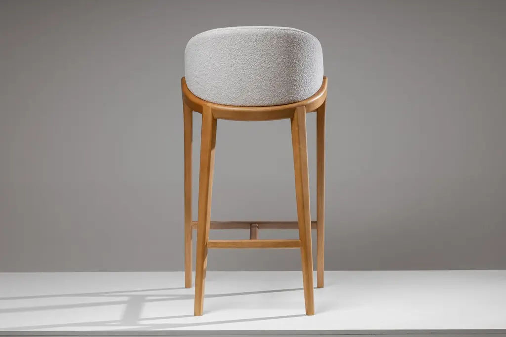 This series, composed of a chair and stools in two heights, has its generating line defined by a central arch that simultaneously divides and defines the seat and the backrest.In a strategy of articulating forms that promotes the maximum of curves combined with good ergonomics, the formal design of this series seeks to achieve an iconographic geometry without giving up the neutrality that this type of furniture requires.
